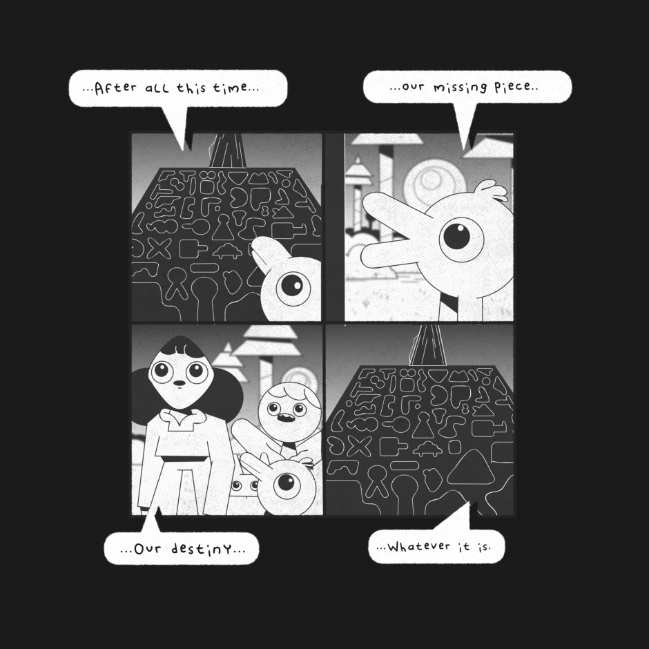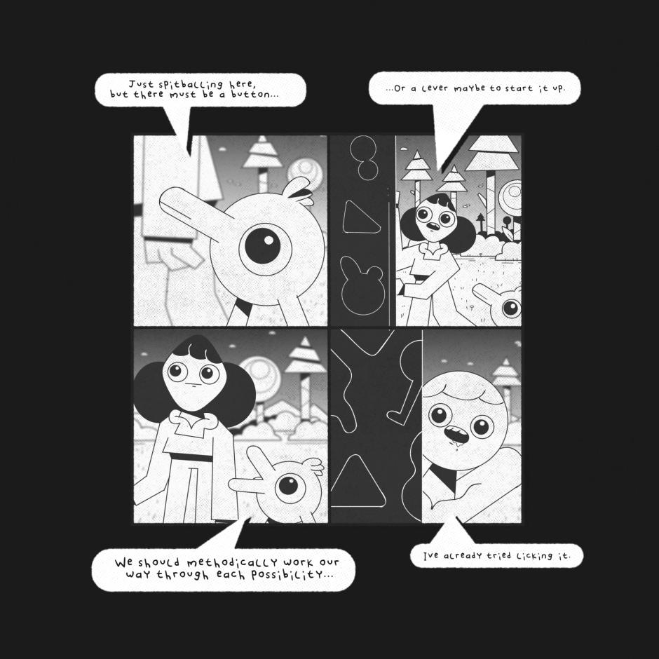 The group attempt to decipher the meaning of the structure.