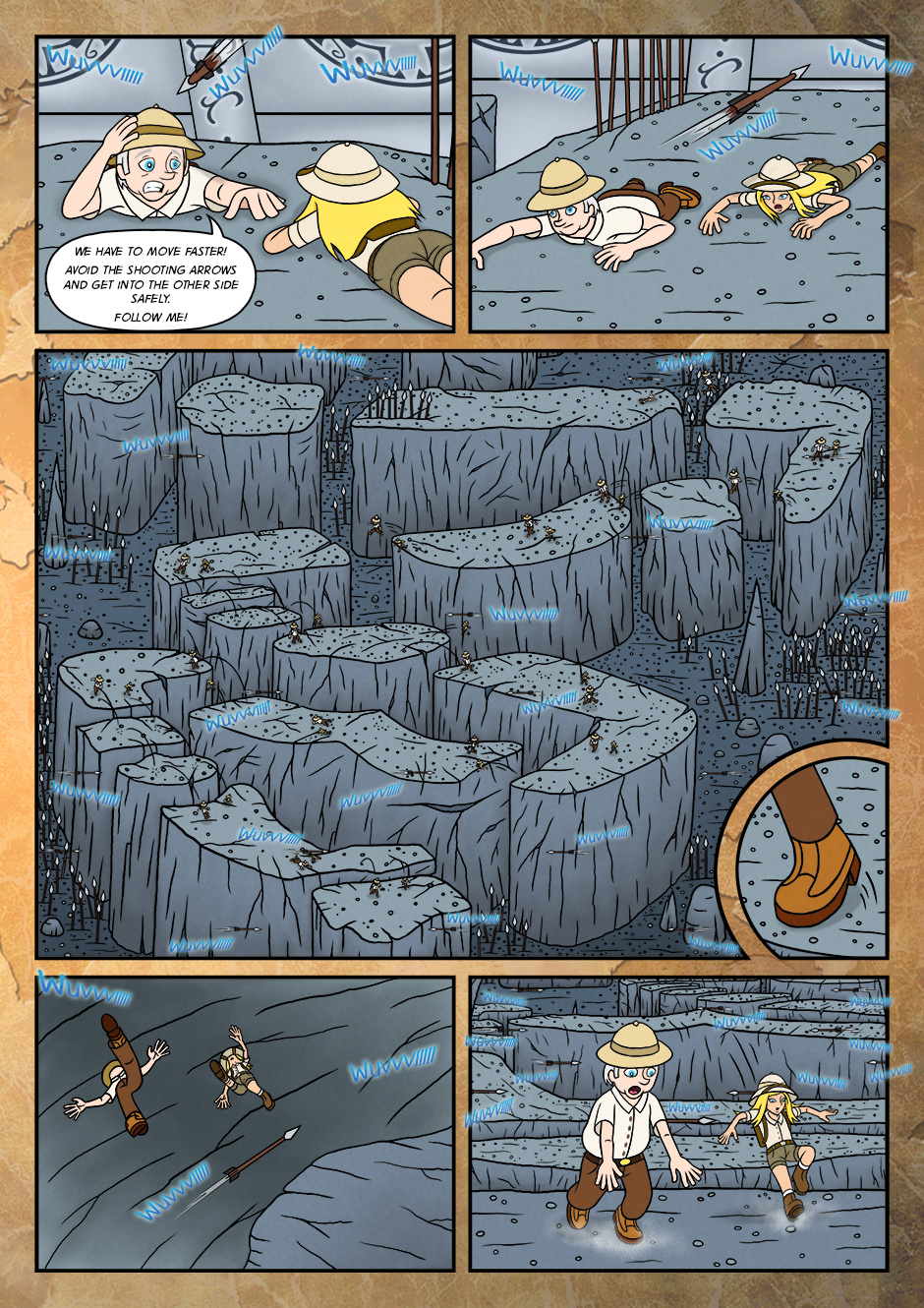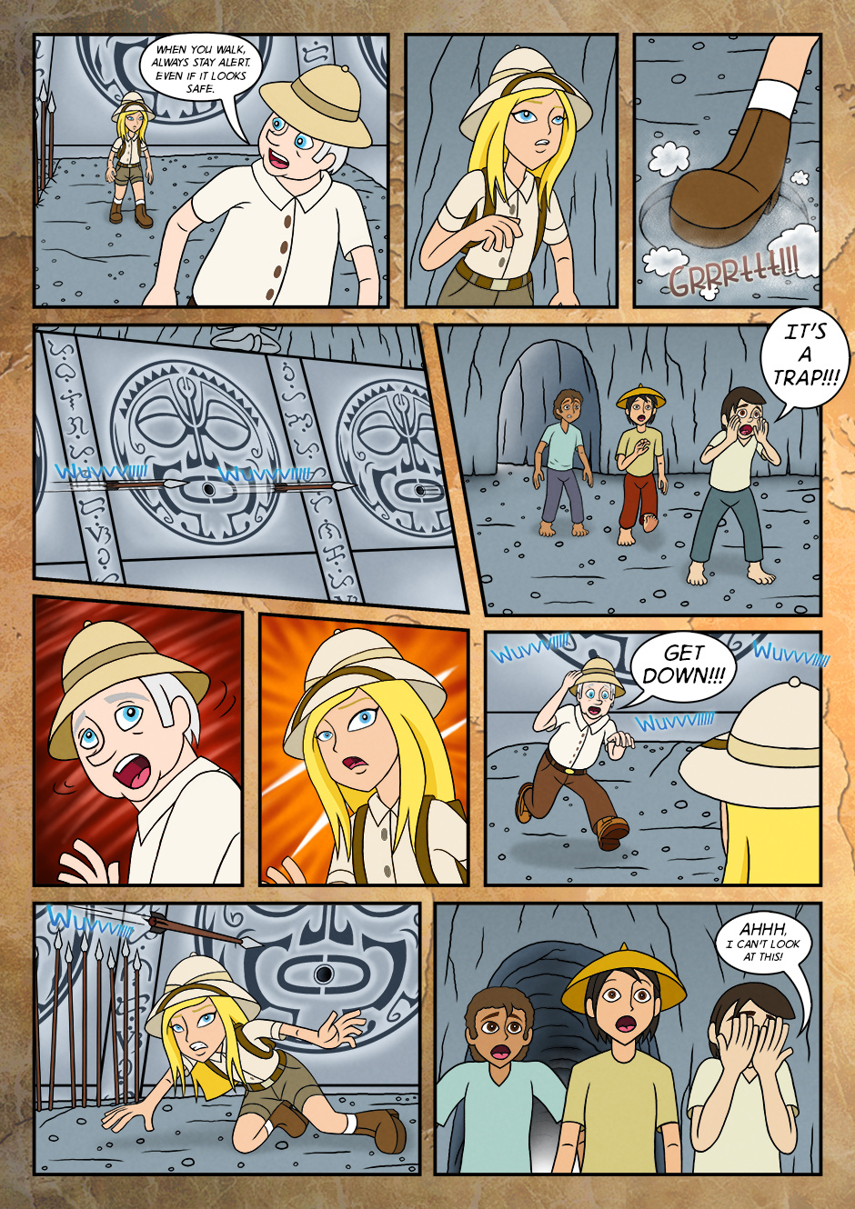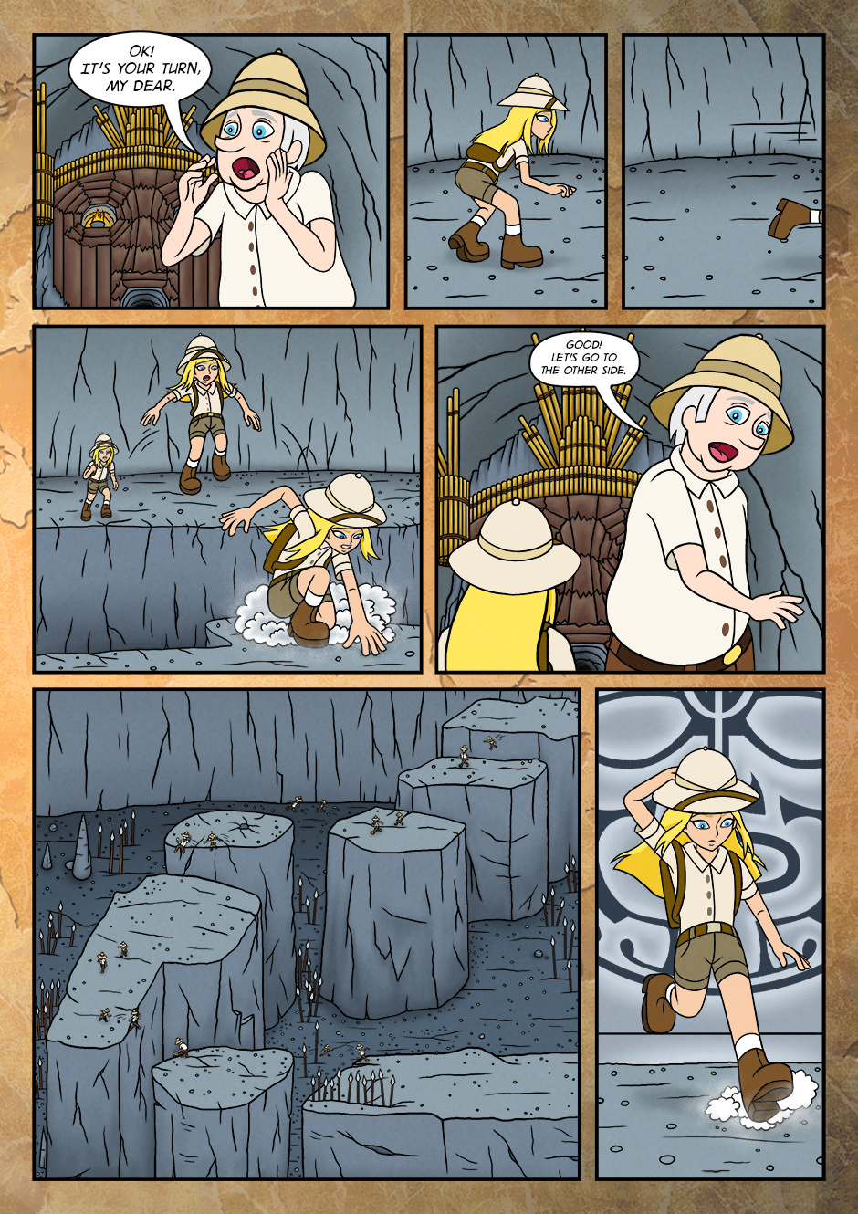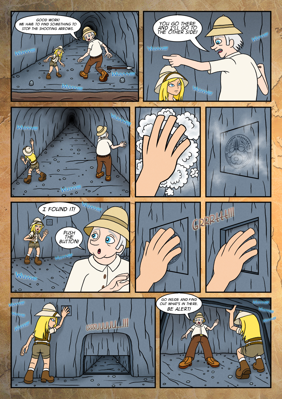 As her adventure for the first time, she went along with grandfather and assisted him to find the objects that were buried long time ago.