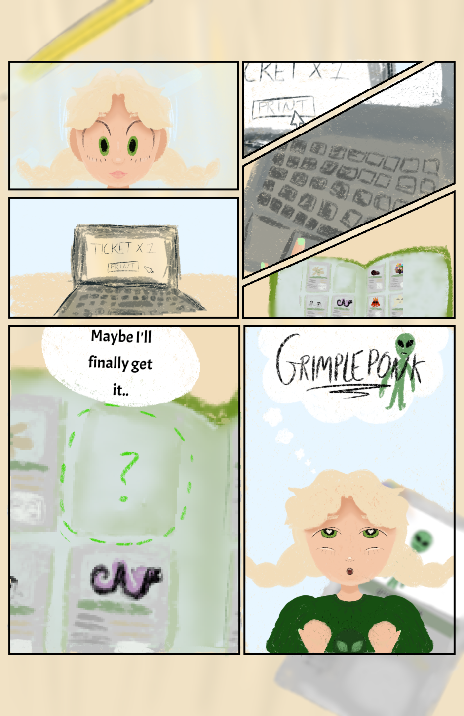 An obvious parody of a popular card game (I know you know which one), Probémon is Bryonny's favourite thing in the world. She's been collecting the alien character trading cards for years and is now only missing just one -- the Grimpleponk card.