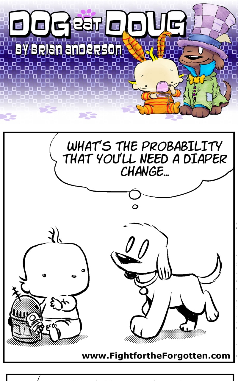 Dog eat Doug follows the daily exploits of Sophie, a cheese-loving chocolate Lab with a nose for the nuances of sarcasm and irony, and baby Doug, a healthy, happy newborn with no concept of jealousy and a limitless curiosity. Along with steampunk cats, comedy club squirrels and a steady stream of quirky foster dogs.
