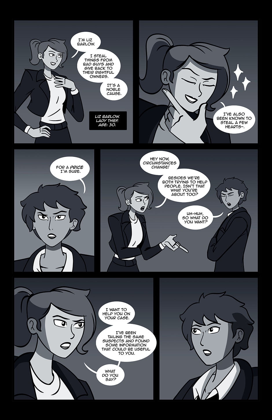 Detective Amanda Reyes partners with lady thief Liz Barlow to solve cases in the mysterious city of New Everton, USA. Can they work together? Will they fall for each other?