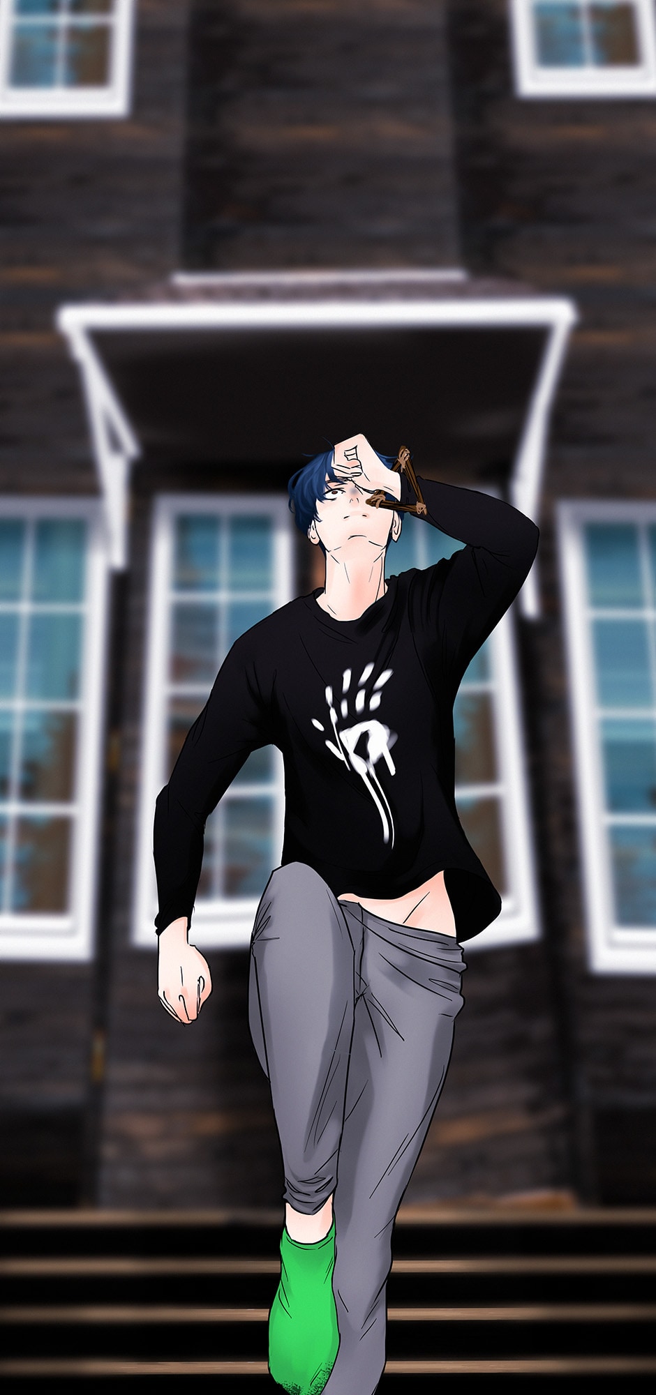 the wrong side, and has a black cat. He is the heir to Kalt mortuary, occupation that has