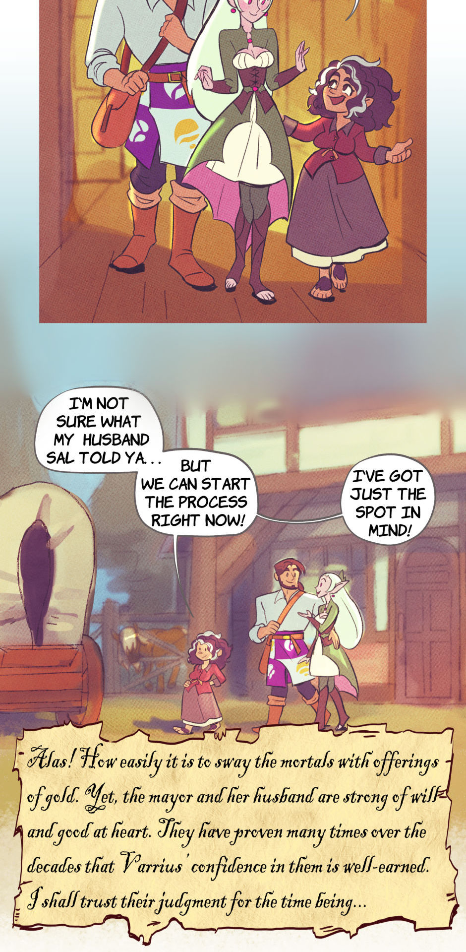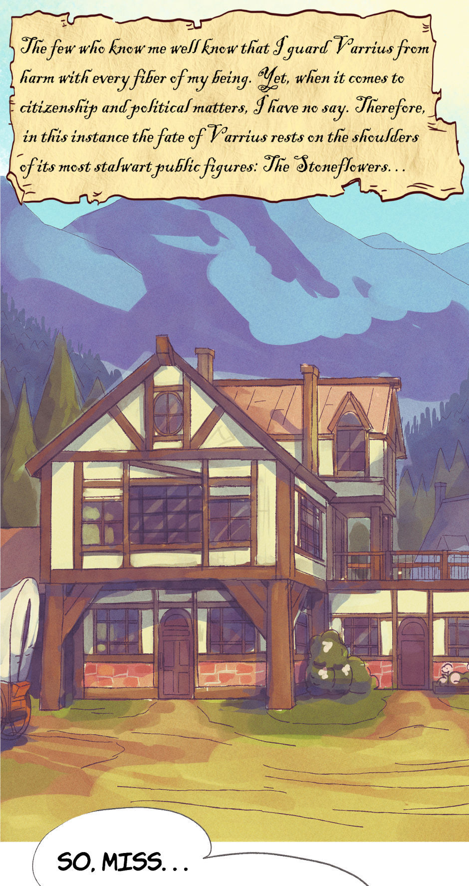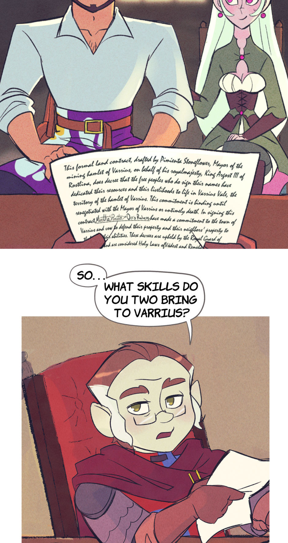Deep within the Fyellkrid Mountains, tucked away in the peaceful Varrius Vale, there is a sleepy little village. The town, like the valley it rests in, is named Varrius, and it recently had some new arrivals. Orris and Mintha are experienced adventurers who have chosen to settle down in the calmest place they could find. They'll soon find out that, just because there aren't any demons or dragons around, it doesn't mean life in Varrius Vale isn't full of adventure!
