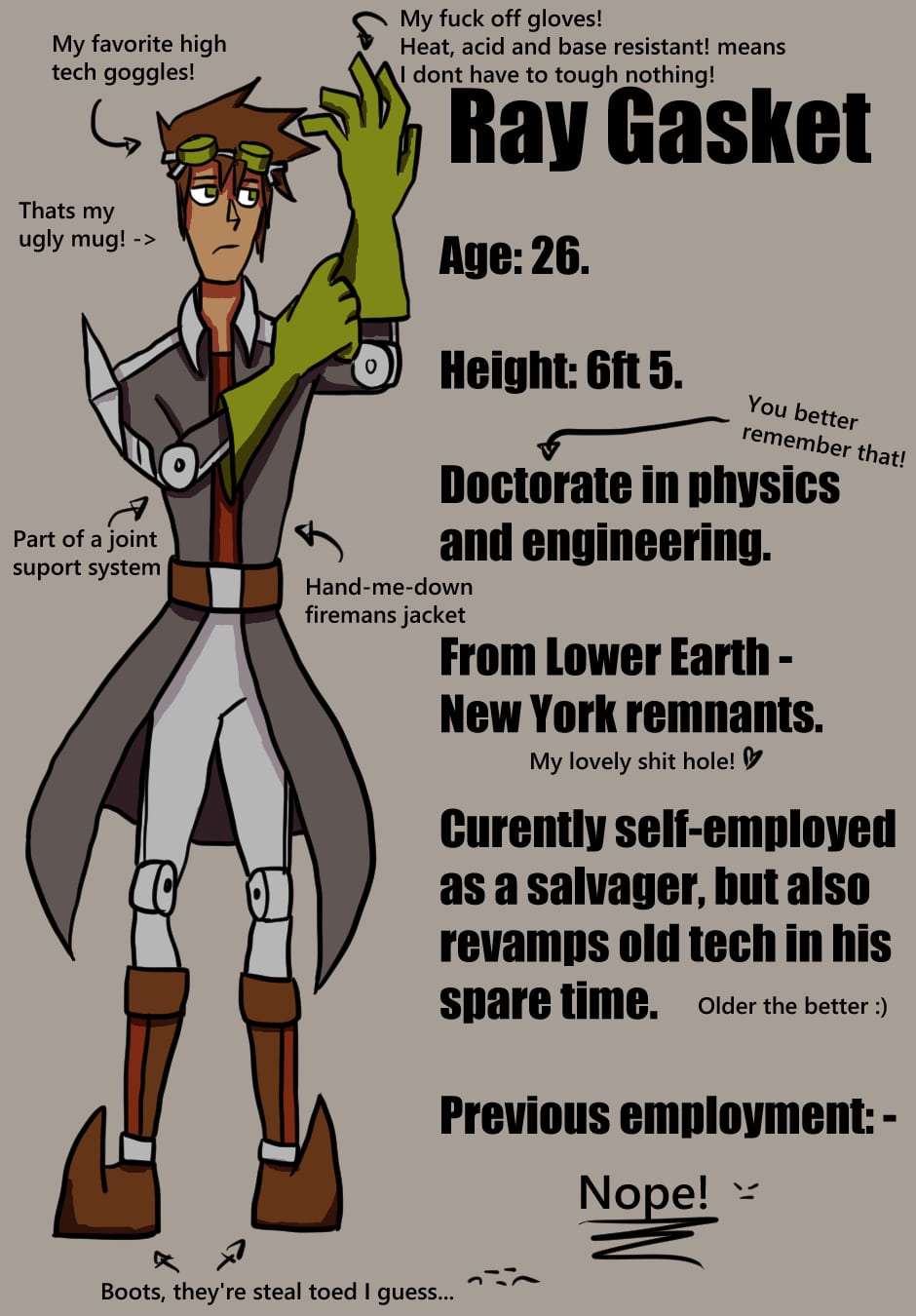 Finally, get our main character's full name! I wanted to add little pages like this after each scene to learn more about characters and the world, small things that might not come up unless I feel like continuing the story past what I've currently written.