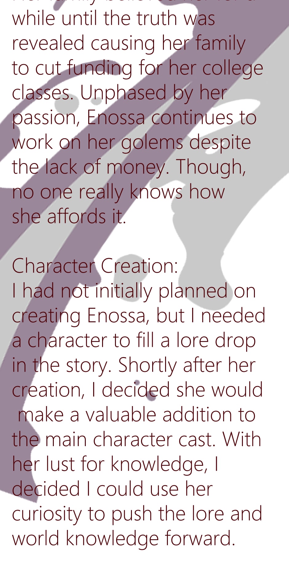 This serves are lore and extra materials for Eidolon: Guild of thorns such as character information, relationships, non-plot related shenanigans, world history, and more.