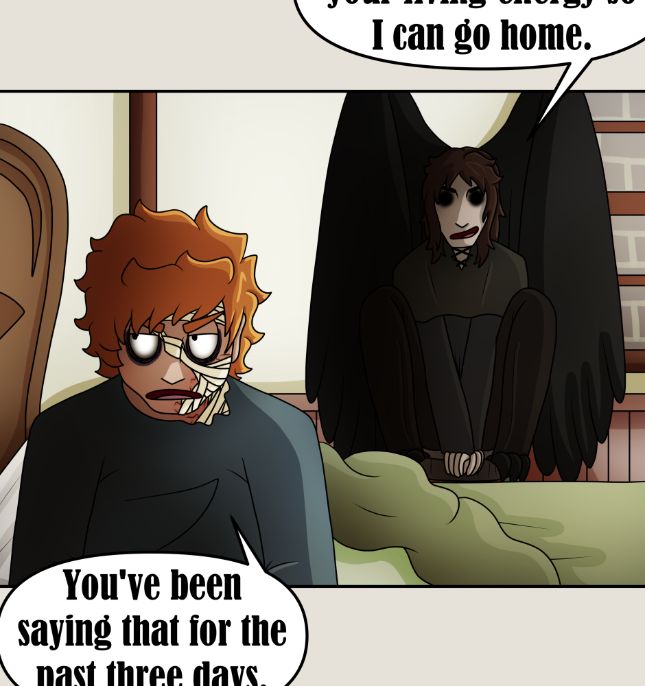 I now wonder why Raven needs his living energy ;> Cool character design! Love the black eyes of the "angel"!