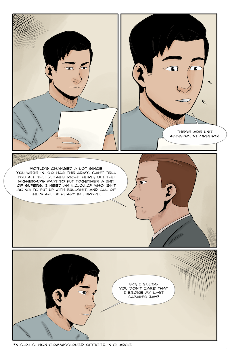 It's been a few months since Dutch escaped the lab of Dr. Franz Teudt, and he's desperate to kill the man who performed medical experiments on him as a POW. His chance comes in the form of Project: Achilles, a program intended to train super humans to be an elite unit in the army. He's not exactly impressed with his crop of candidates, but as things worsen across the Atlantic, it becomes clear that they're the best chance they've got against Germany's growing army of super soldiers.