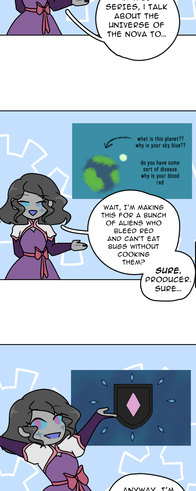 She’s the princess of an empire. He’s the descendant of a now-disgraced family of warriors. When Aleeyah picks up an amulet deep within her family’s archives, she and Kalen find themselves separated for the first time in years. With tensions boiling between the rich and posh sky kingdom of Zeunia and the mineral-rich colony of Juno below, the friendship between the two teens is tested as the universe of the Nova changes alongside them. Updates monthly on the 28th.