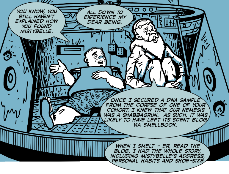 The University of Life is an ongoing comedy sci-fi comic strip set on a planet-sized university of the far future. ULIFE (or Monica, if you wish to give it a more personal name) hosts a wide range of diverse and interesting life-forms and as such, constantly has to face the challenge of ensuring that the needs of every different and contrasting life-form are met. It is a place where, just as one being’s sandwich is another being’s poison, so one being’s soppy hug is another being’s murder. Despite the potential for chaos this extreme diversity could cause, ULIFE / Monica is a relatively peaceful planet, possessing neither a regular police force or army. In fact, apart from the 522,601 statutes governing the use of computers, there are practically no rules to govern the inhabitants' lives. Of course, underneath the peaceful veneer, all sorts of crimes and skulduggery persist. and the apparent interest in diversity is really just a cynical mix of penny-pinching and public relations.