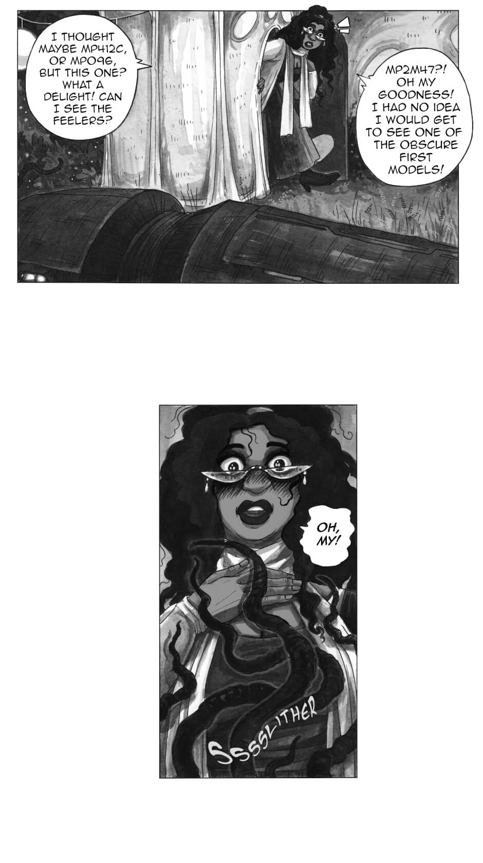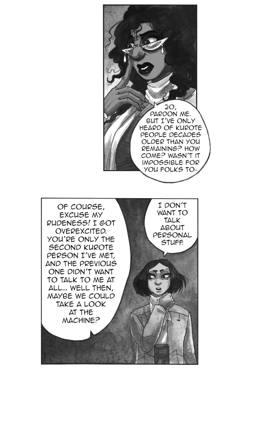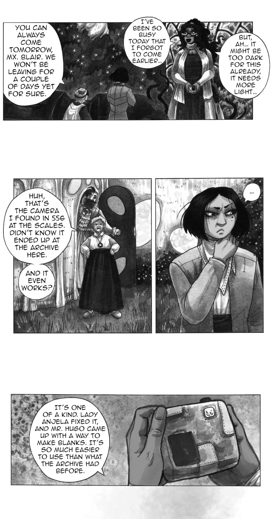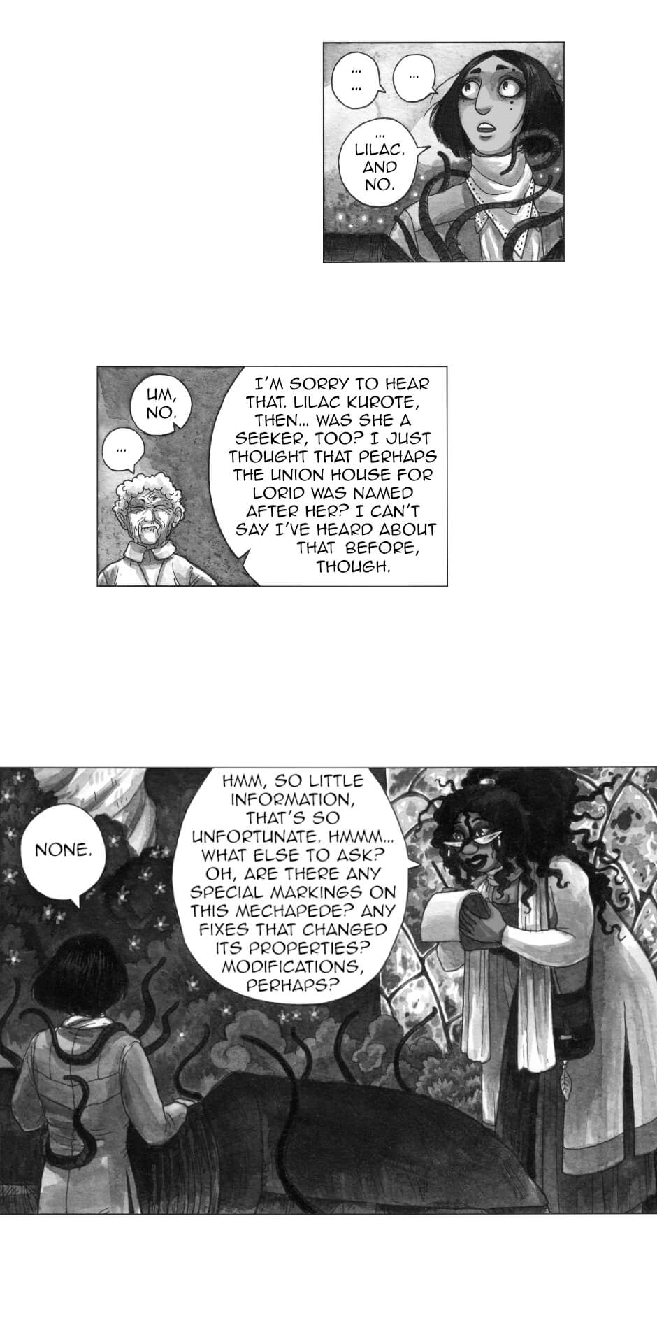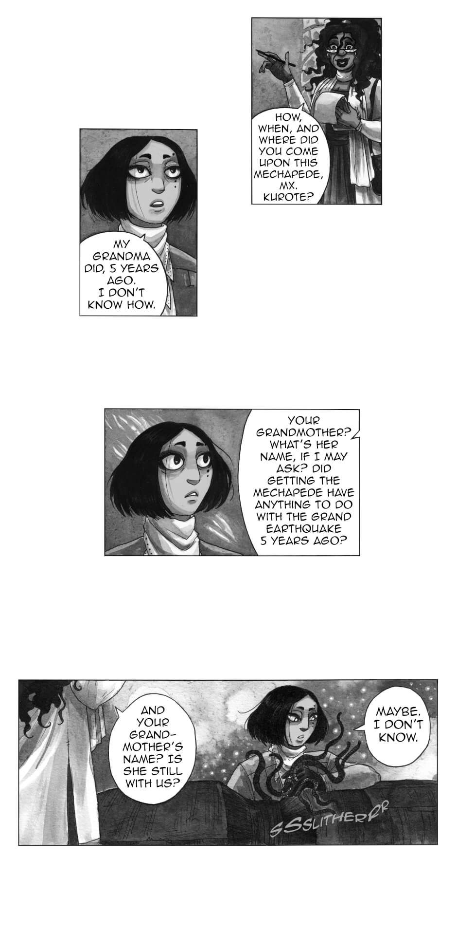 In other words: queer rep galore, badass grandmas, murder, mystery, mechanical worms; all painted in ink by yours truly.
