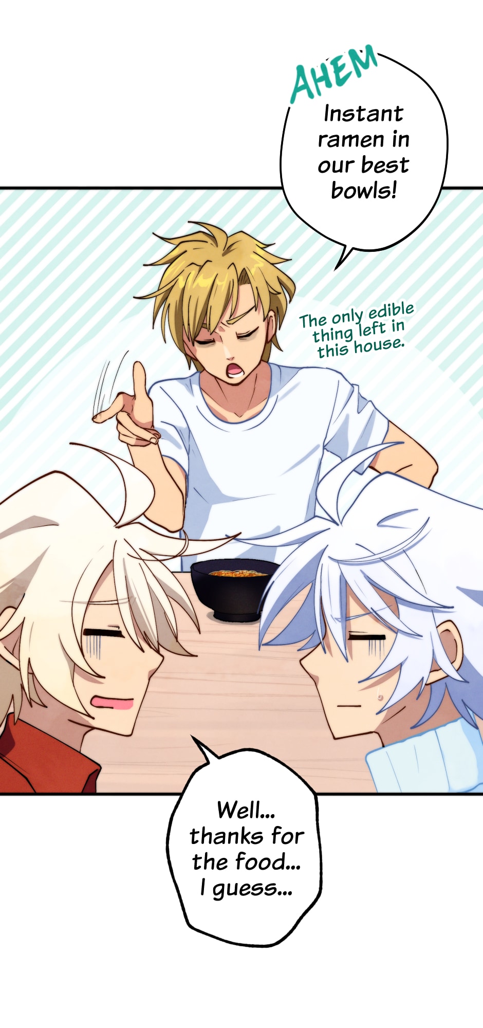 Oh boy! What's up for grub? Scones? Fish and Chips? Burger? Hot Dogs? No! It's the worlds most famous food: INSTANT RAMEN! Zai was imagining all kinds of English food, he doesn't know the difference between America and England, but instant ramen is better than anything in the fridge... The twins can be lucky, that instant ramen doesn't go bad.