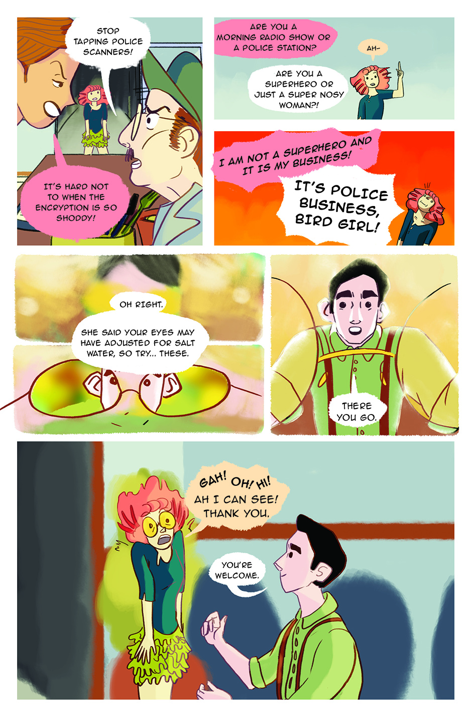 Bird Girl is most definitely not a superhero. Born with wings for arms, all she wants is to be taken seriously. She forgoes the path of a vigilanty and decides to seek justice, legally, by becoming a civil lawyer!