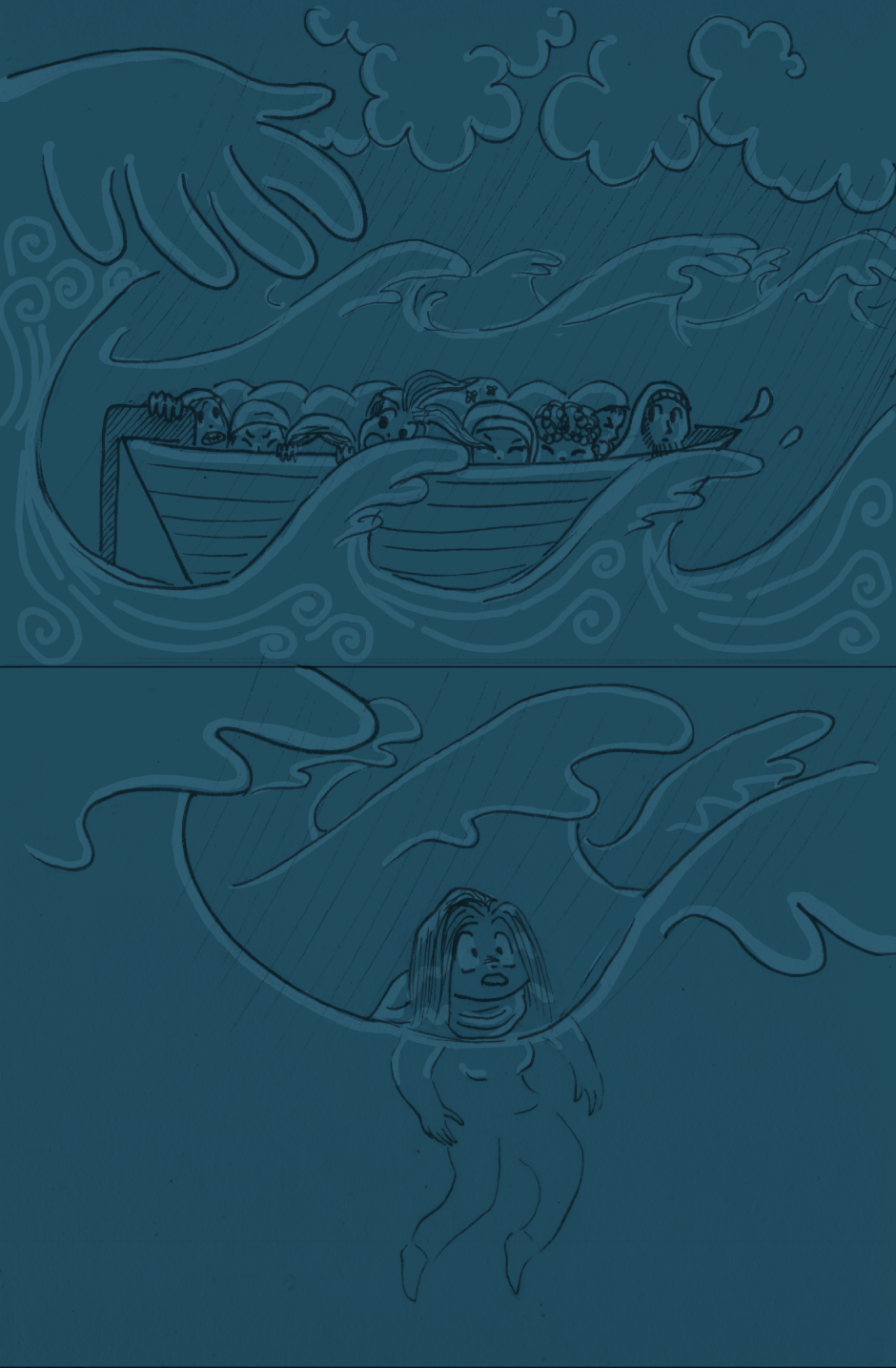 Poor Zerya was swept from the boat by a huge storm wave.