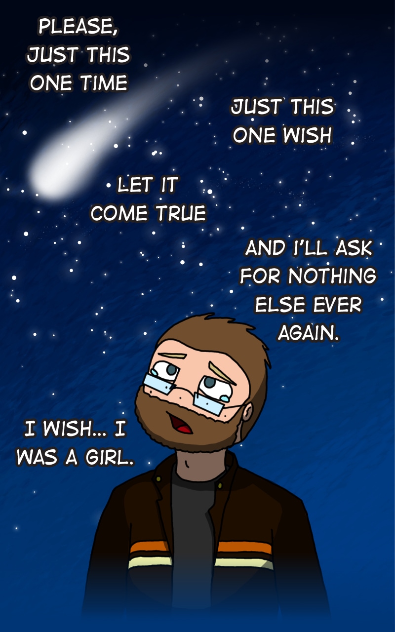 Christina is an American, Millennial, and trans woman with too much free time and a boring life. So, naturally, she created this comic, detailing her personal experiences with transition, relationships, impostor syndrome, and ever-present gender dysphoria. Thanks for reading!