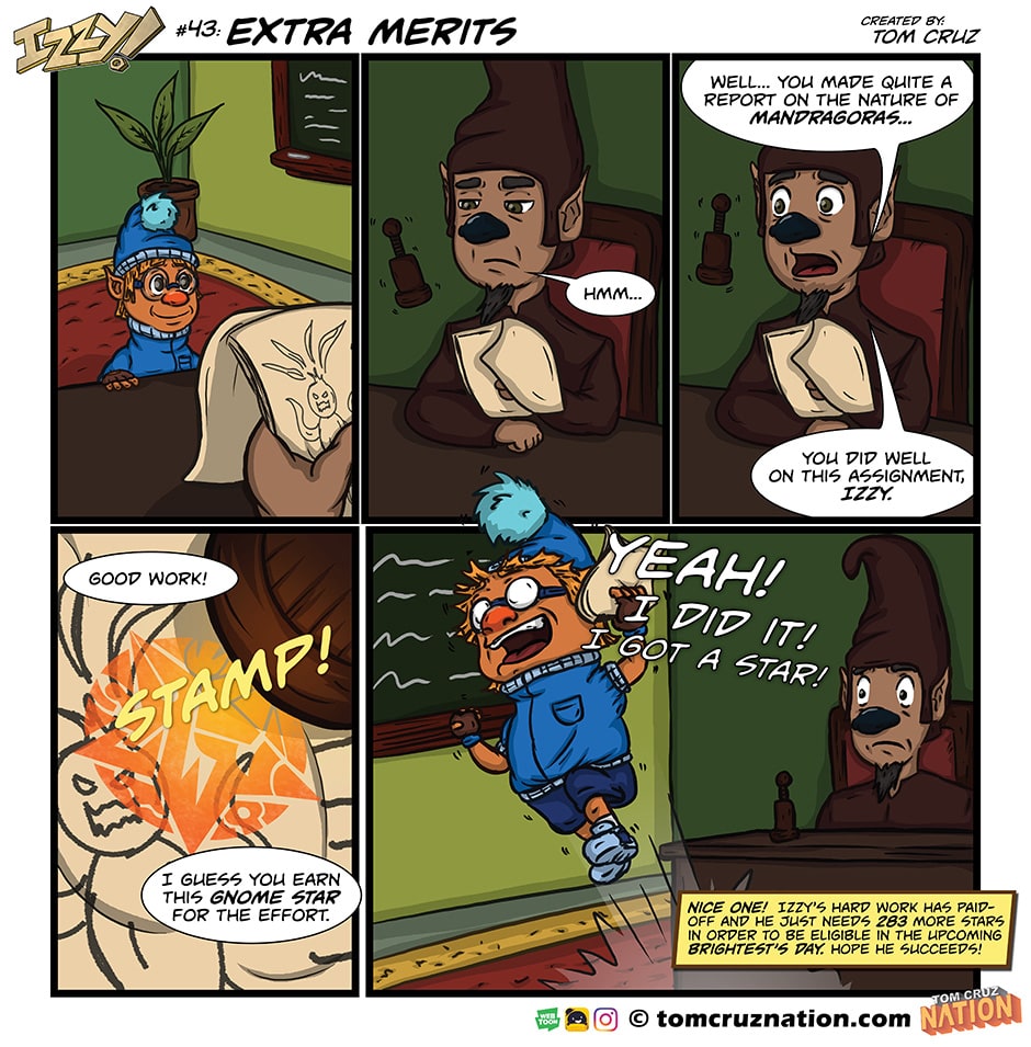 After spending much time and hard work, you earned that star, Izzy! However, you've still got a looooooooong way to go. Thank you for reading this week's new episode of the comic.