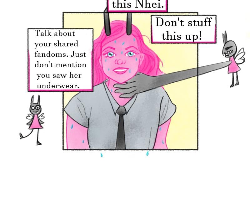 Horn-N.H.E.I - girls love(GL)(BL) - High schoolers with horns, N.heimia, H.arrison, E.lijah, and I.zsora navigate teenage life. - It centers around Nhei. She is playful, perverted, confident, speaks freely, and knows that she is the desire of many.