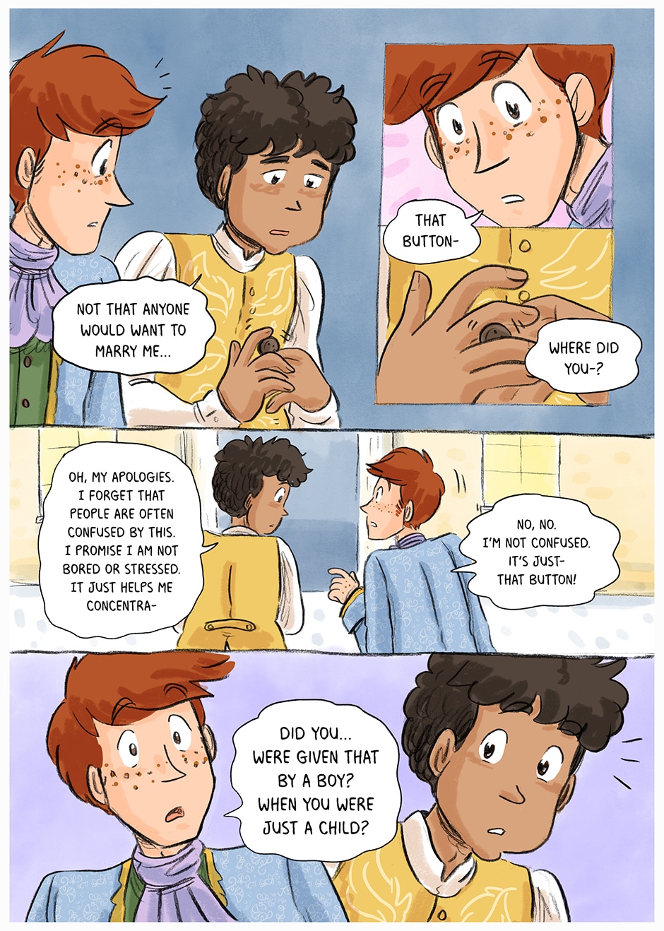 A fun, fluffy regency style drama exploring queer romance, autism and ott regency costumes~