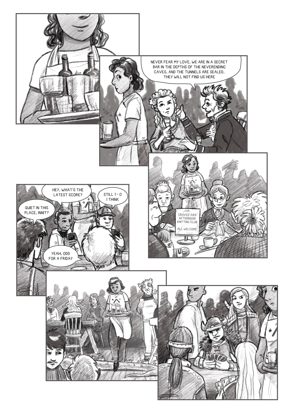 Here she meets the staff: Landlord Evan, manager Gregoria, buyer Canmore and server Cassie. She find herself a job, friends, a home, and possibly more.