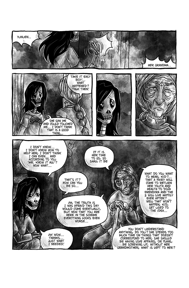The story of Yunuen, a girl with a very special gift; a really big heart... oh yeah, and the ability of seeing the dead souls. Her friendship with a cursed old man who can't die, a skeleton haunted by his past and an ancient darkness being with unfinished business with both of them, all under the Day of the Dead tradition.