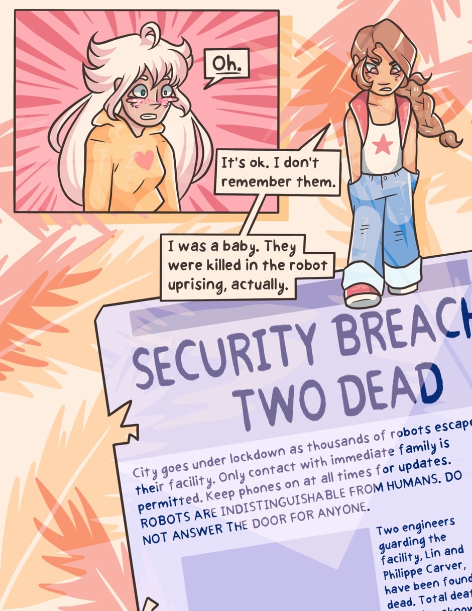 Eight years after a robot uprising, Buttercream Sala -- granddaughter of history's greatest A.I. researcher -- finds friendship in her neighbors across the street. This includes Duckie Carver, the city's most prolific robot hunter.