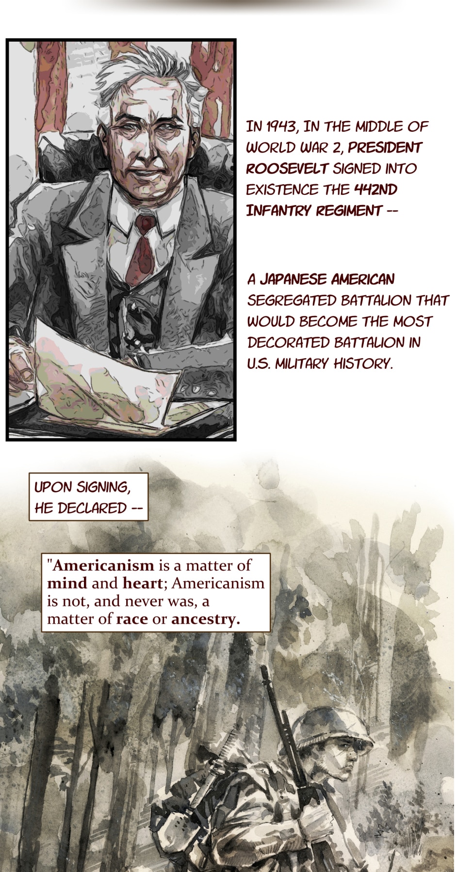 Thank you for reading the my project teaser about the 442nd Infantry Regiment. It's been an eye opening and inspiring project as it requires both research from a historical and visual context. Stay tuned as Episodes drop this coming September. To support this project, please check my Patreon for behind the scenes posts and extras. Please ask me any questions in the comments!