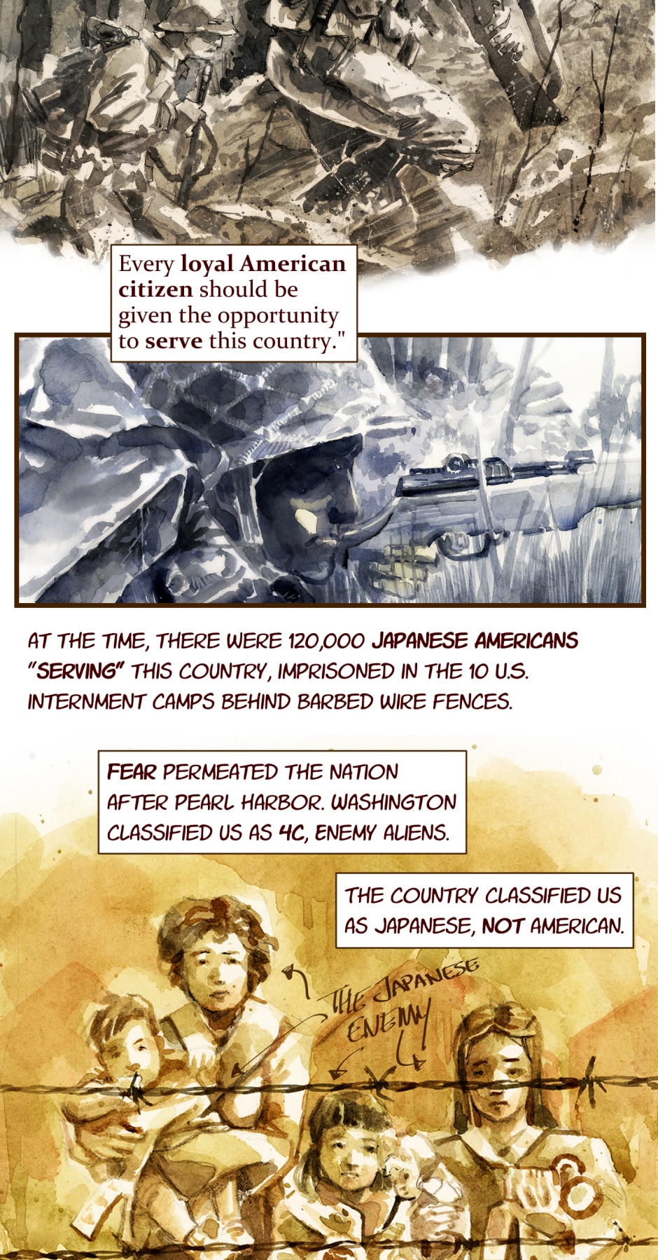 Follow the Japanese American 442nd Regiment as they fight through Europe during WWII, while Japanese American families remained unduly incarcerated in US Internment camps. The 442nd is the most decorated unit in U.S. Military History earning over 18,000 awards over a 2 year period.