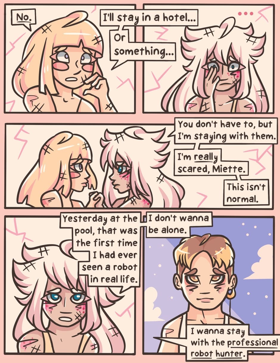 Eight years after a robot uprising, Buttercream Sala -- granddaughter of history's greatest A.I. researcher -- finds friendship in her neighbors across the street. This includes Duckie Carver, the city's most prolific robot hunter.