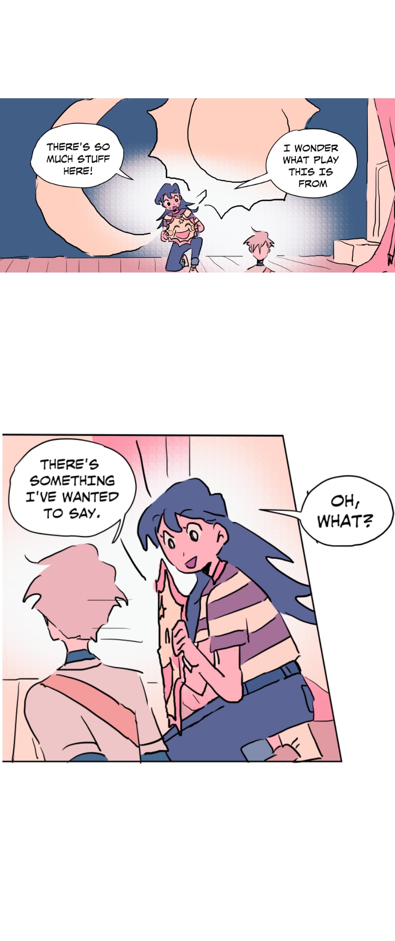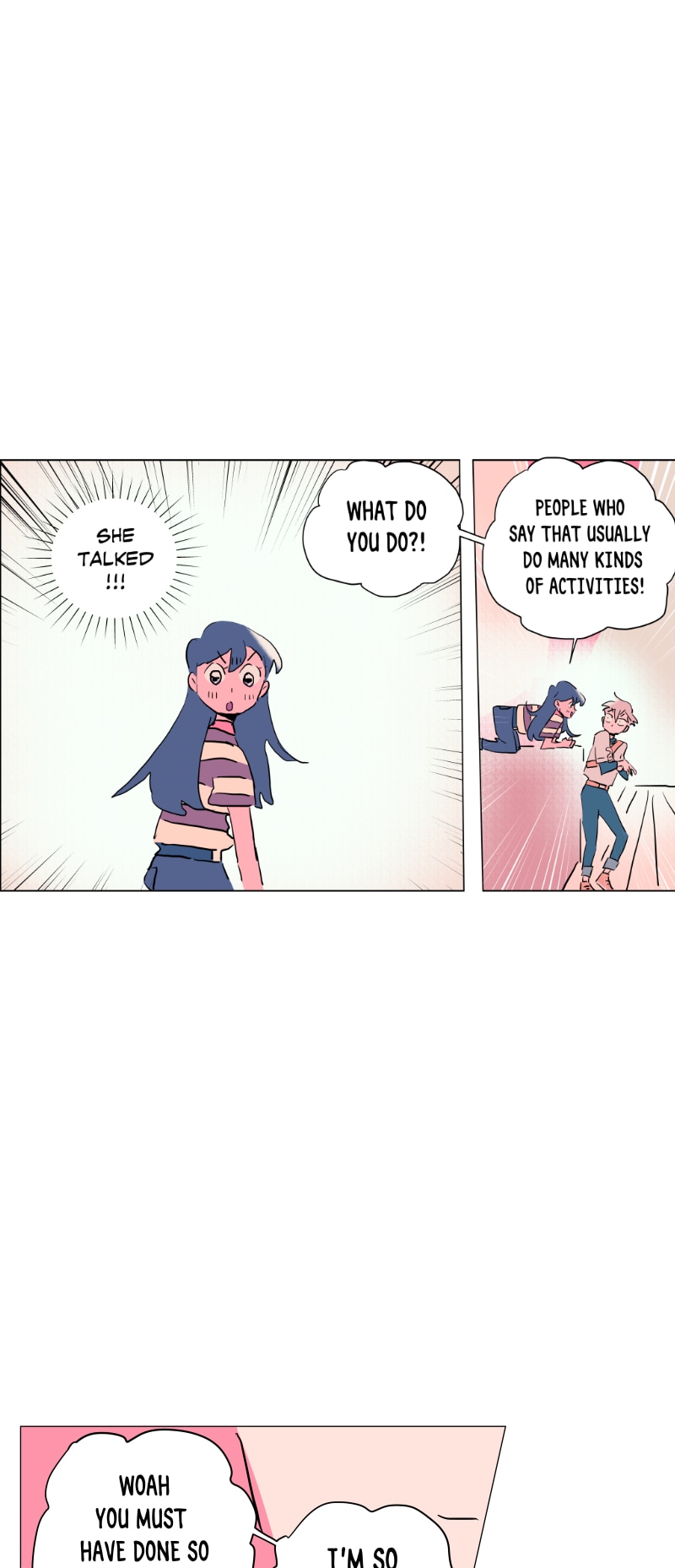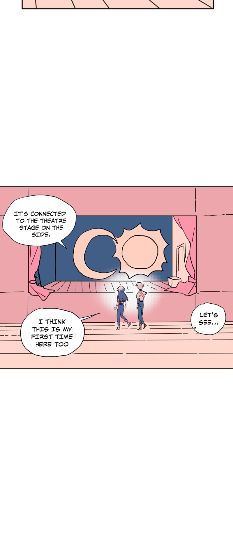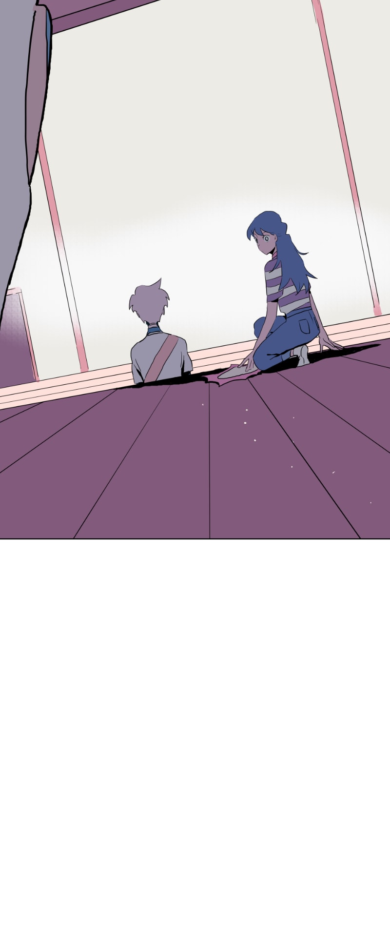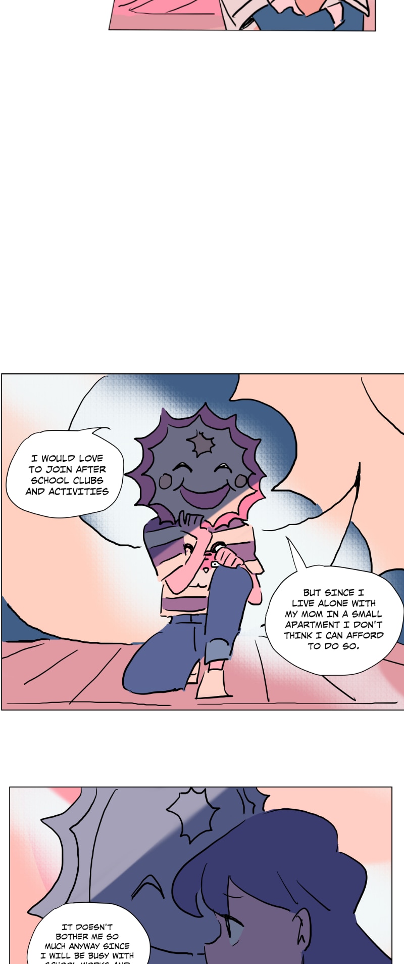 I really like this schedule and length of these episodes currently! Rather than long or short episodes, I really love when something substantial happens each update (something spurring a reaction from the characters or the readers) - previously Emily was caught up to speed abt her present situation (and so have we as readers) and there was a new student; here Emily shows Quinn around the school and surprise! Quinn is also from the branch (I rlly loved the shift from untalkative person to assertive person!)