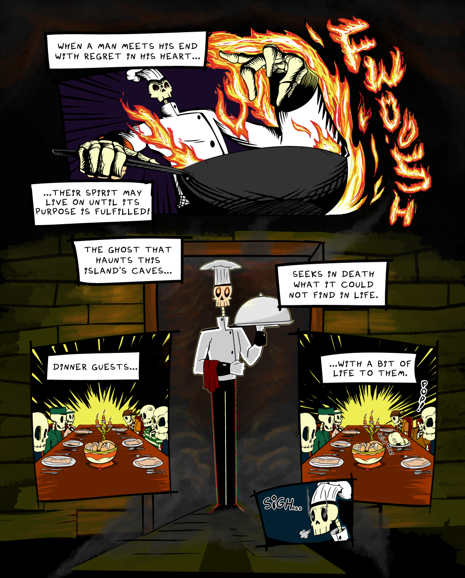 There are two things you're told never to trust. Nami comes face to face with one of those deep in the caverns of the island. The skeleton chef is determined to break the mold and his own curse by prepare for Nami a meal worth dying for.