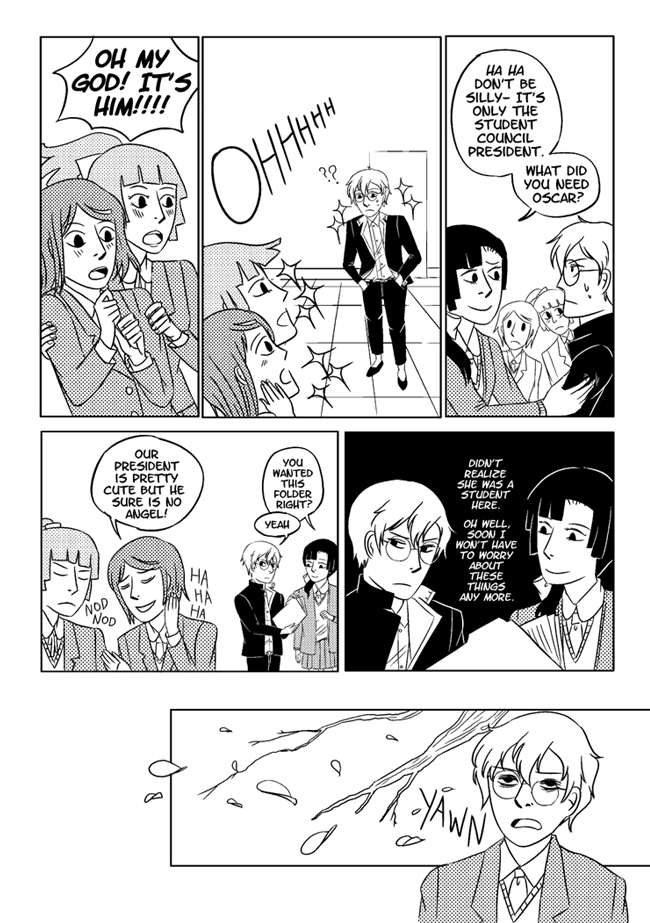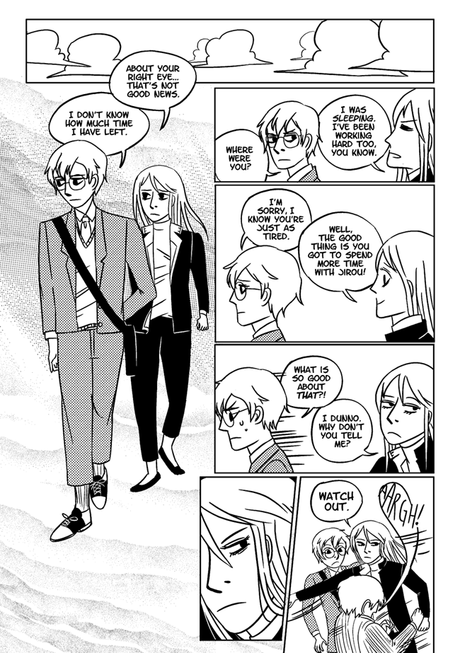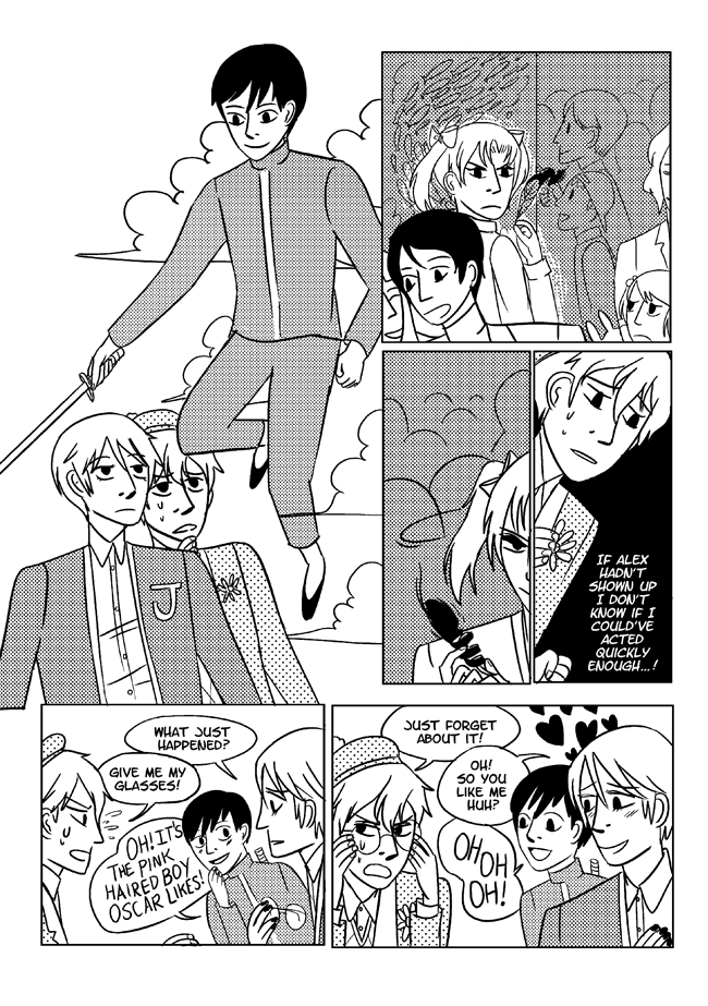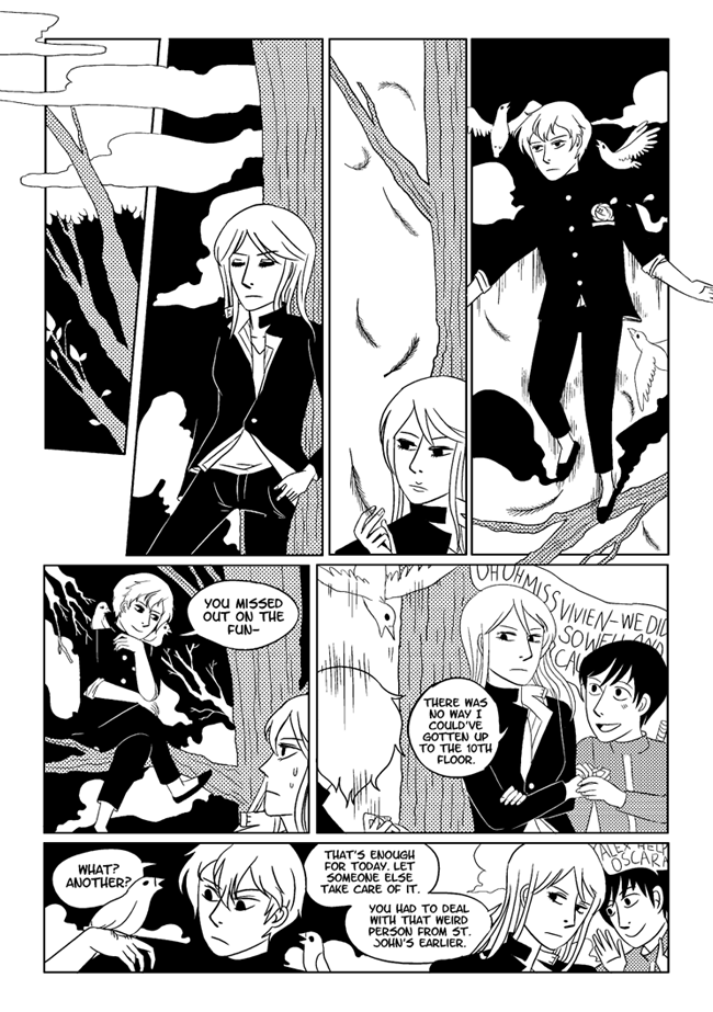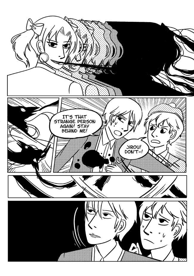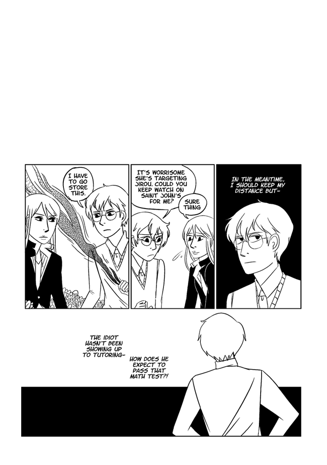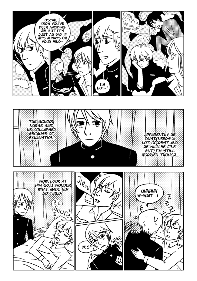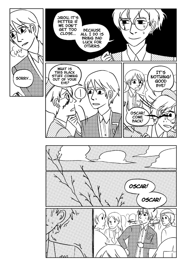 High school delinquent Jirou has a lot of indescribable feelings for student council president Oscar who actually has a huge secret that makes it difficult for him to get close to anyone. In order to survive he and his friend Vivien take on ghosts and demons in the middle of the night. About trauma, friendship, soft feelings. Romantic, comedic, and nostalgic and full of love for all the characters.