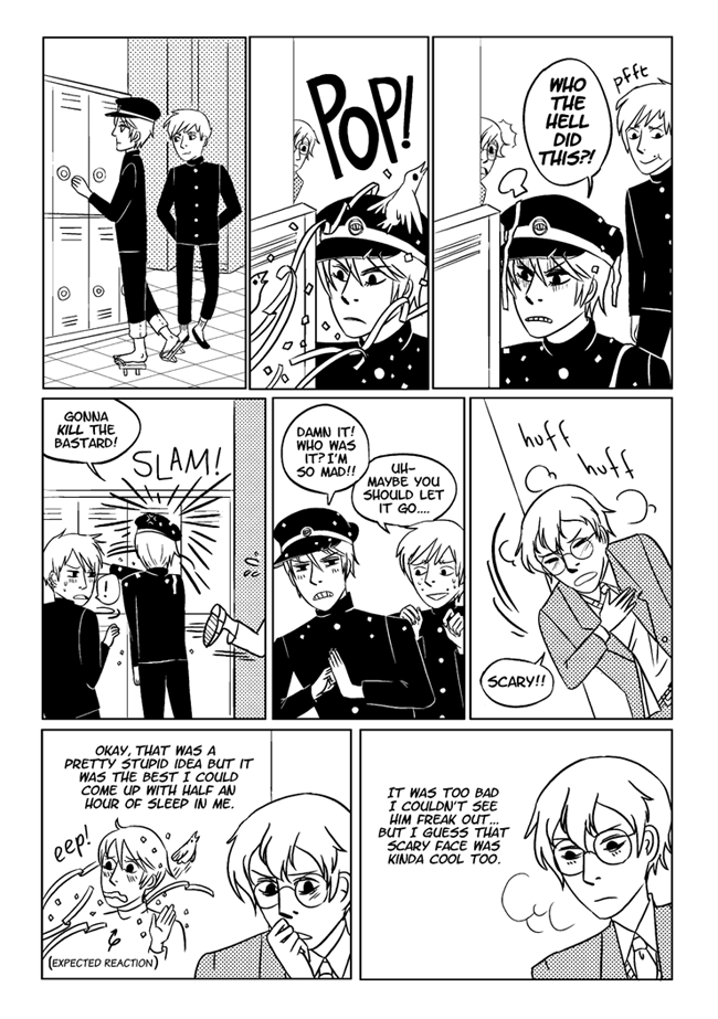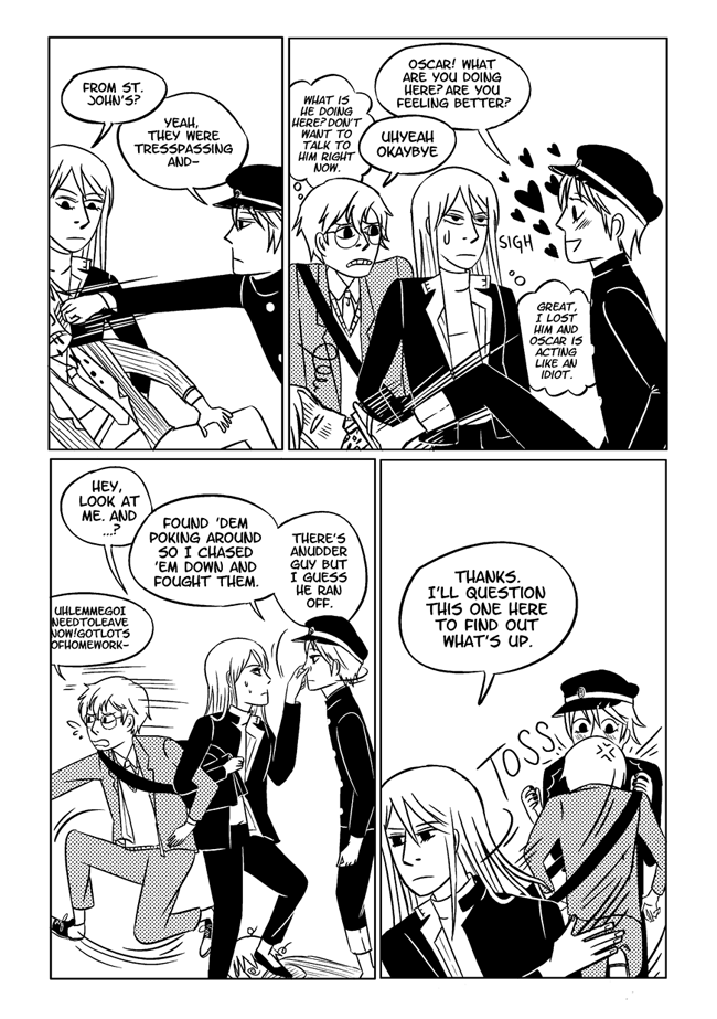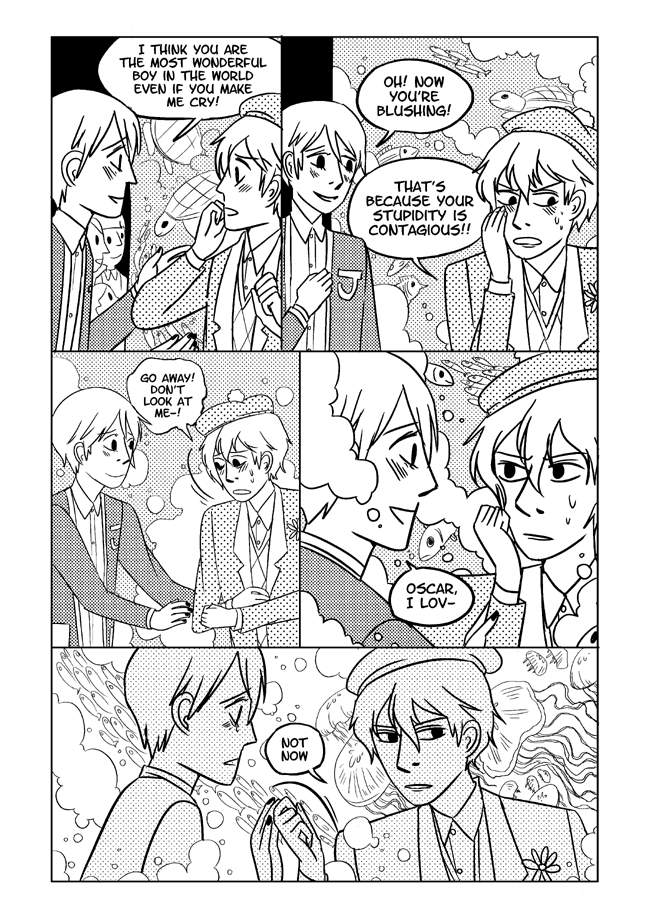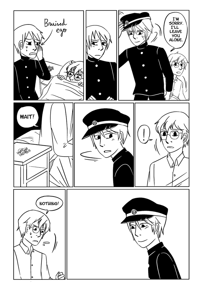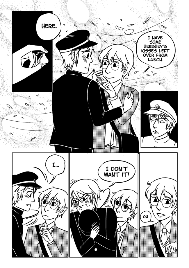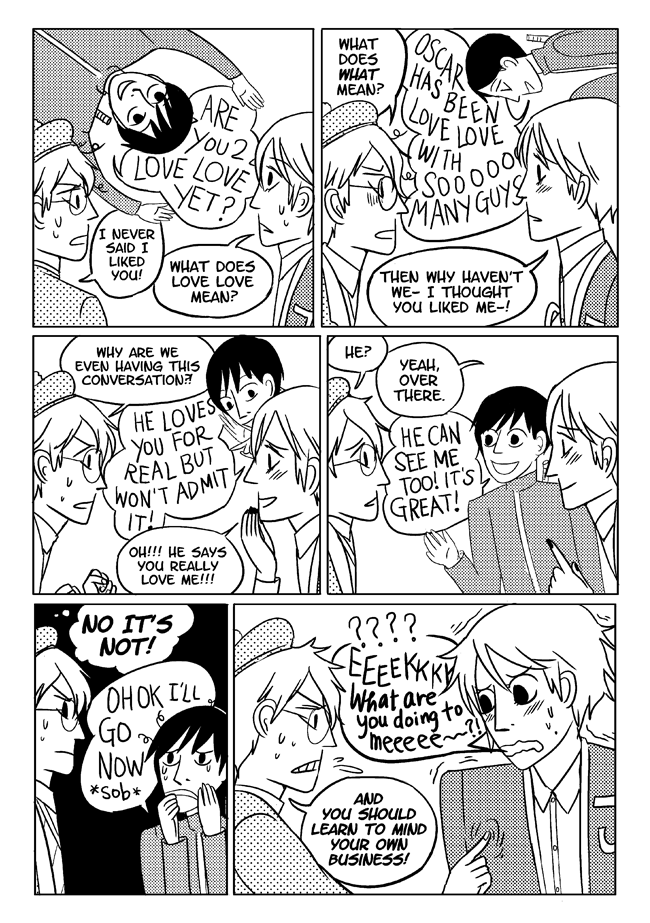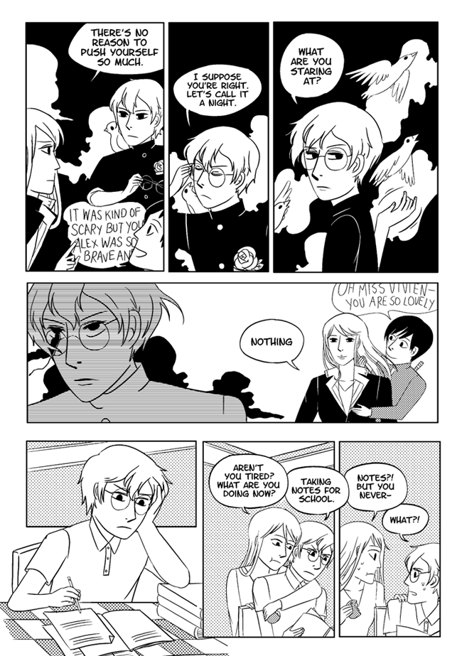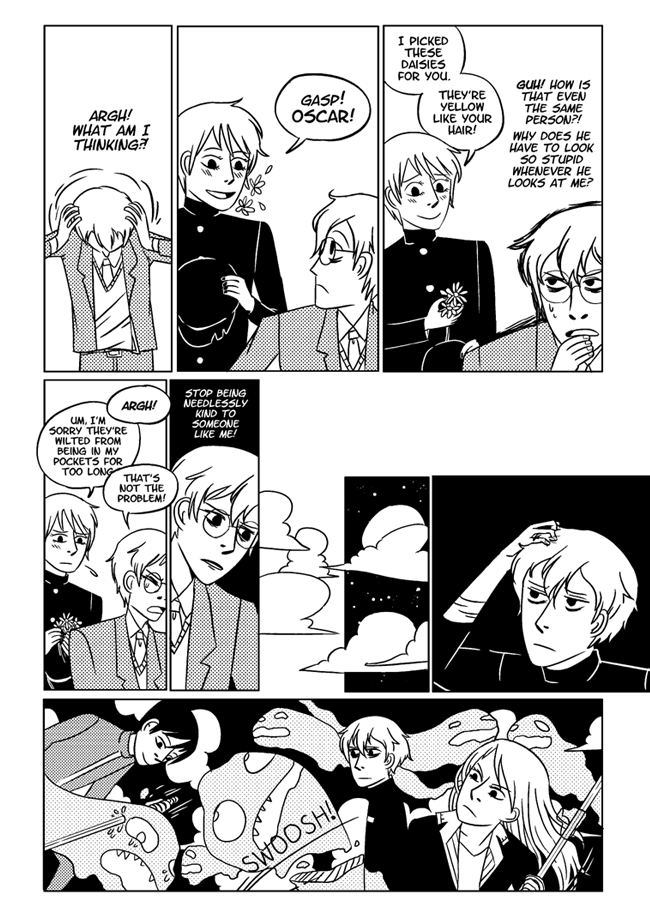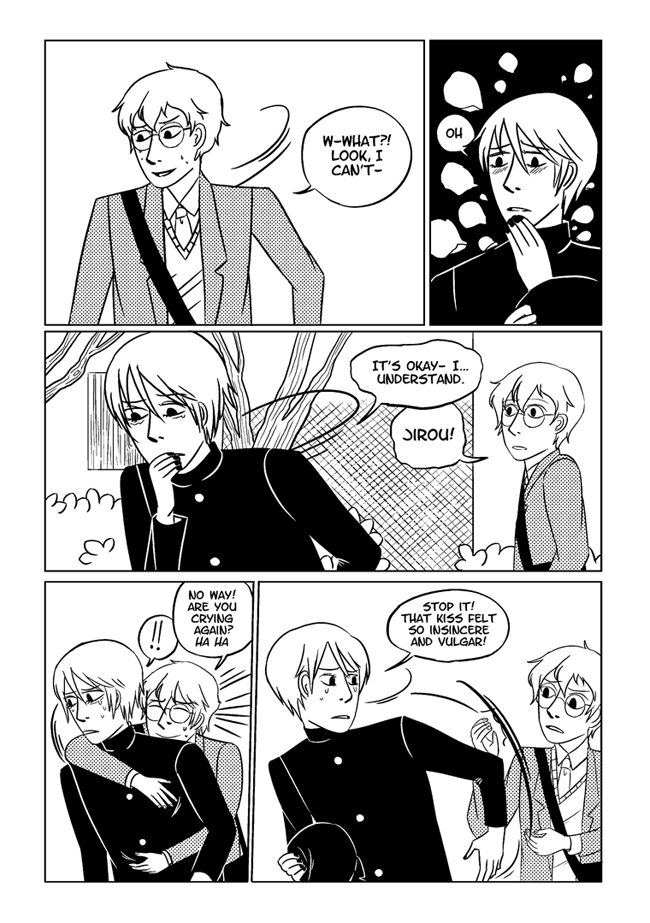 High school delinquent Jirou has a lot of indescribable feelings for student council president Oscar who actually has a huge secret that makes it difficult for him to get close to anyone. In order to survive he and his friend Vivien take on ghosts and demons in the middle of the night. About trauma, friendship, soft feelings. Romantic, comedic, and nostalgic and full of love for all the characters.