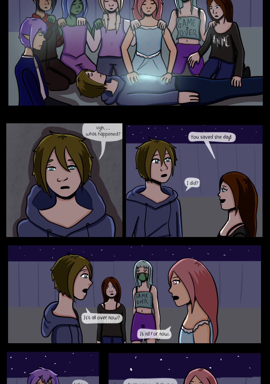 At least! We have reached the end of this journey! I never thought I'd see it end as the project was continually on the brink of being dropped. But alas, it is done! And I've learned a lot about storytelling from this. Now I can take all I have learned and move on to bigger and better projects! Thank you!