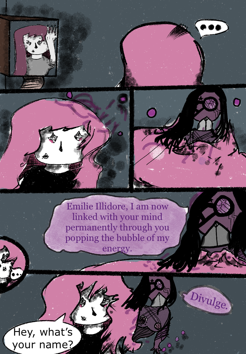 Our protagonist Emilie Illidore encounters a mysterious being in her bathroom mirror. After some information is divulged, the two are linked and Emilie has gained a new mysterious power.