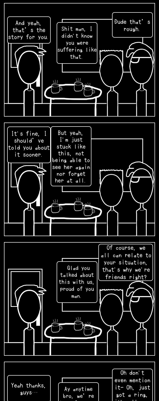 And not to mention that there's also some dark humor and edgy emphasis about having an obsession with a girl, one-sided love, traumatizing situations, all that jizz.