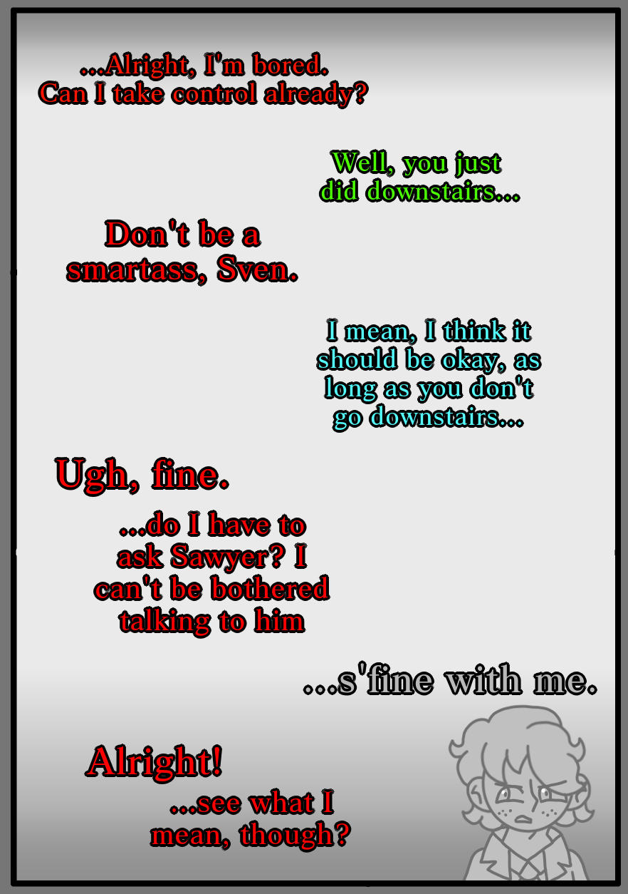 If you weren't able to pick up on it: Sven has Dissociative Identity Disorder, or DID for short. Just thought I'd clear that up ^^