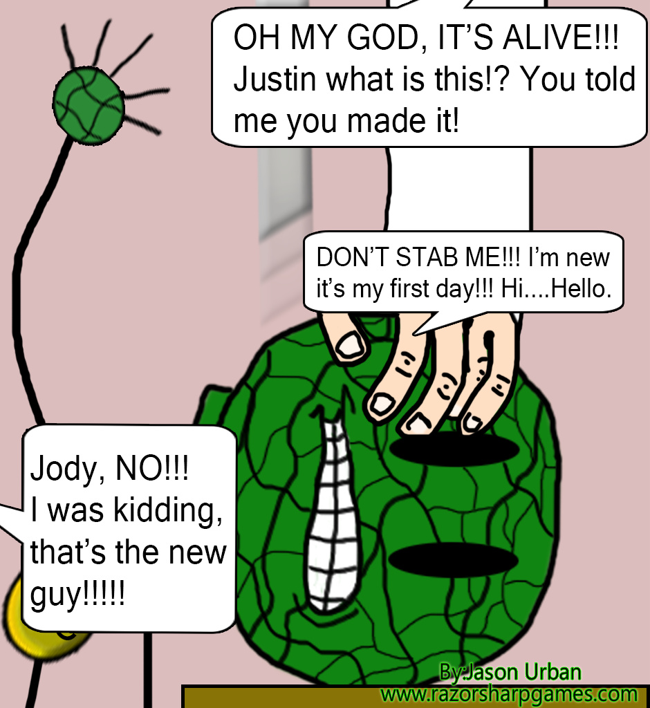At Work With Captain Cabbagehead is a series about CC in the workplace. Captain Cabbagehead got kicked out of his father's house so he had to get a job. Then he got fired so he got another job. He got fired from that job as well. The cycle continues with amusing results. Follow Captain Cabbagehead 5 days a week, Monday to Friday and if you have time check out the video game starring the Captain over at www.razorsharpgames.com