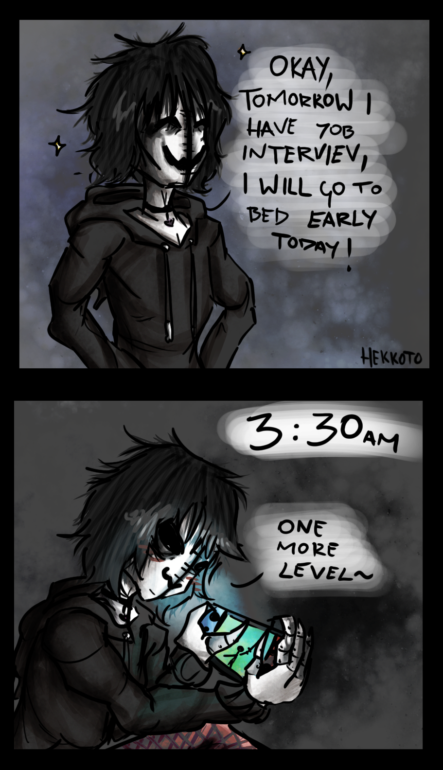 Claw decided to do something with his life and get a job so he can actually afford basic things. Of course as teen he thinks Switch is much more important than home without hole in roof ;p probably thats why he moved to Slendy's mansion >XD but its highly possible he will oversleep ;p