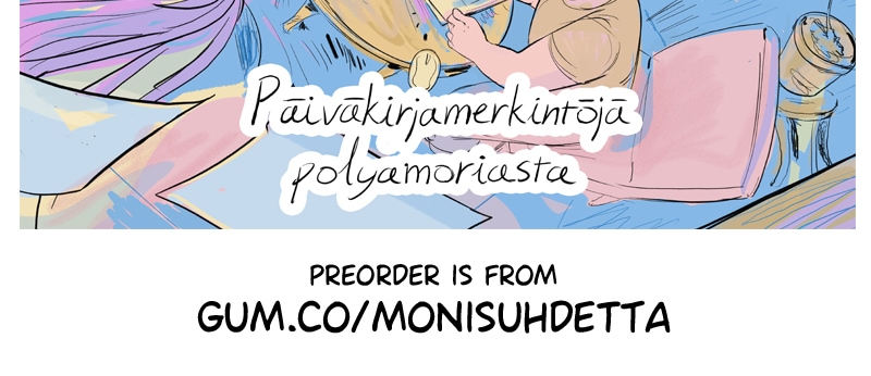 My book is coming out! It's in Finnish (we are Finns, if you didn't know) so if you know any Finns who might be interested, spread the word! The preorders are open on gum.co/monisuhdetta
