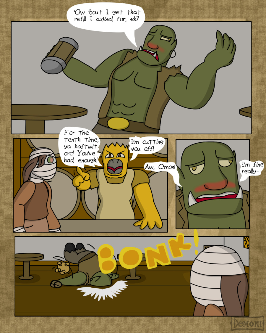 Page 9. A drunk orc appears.