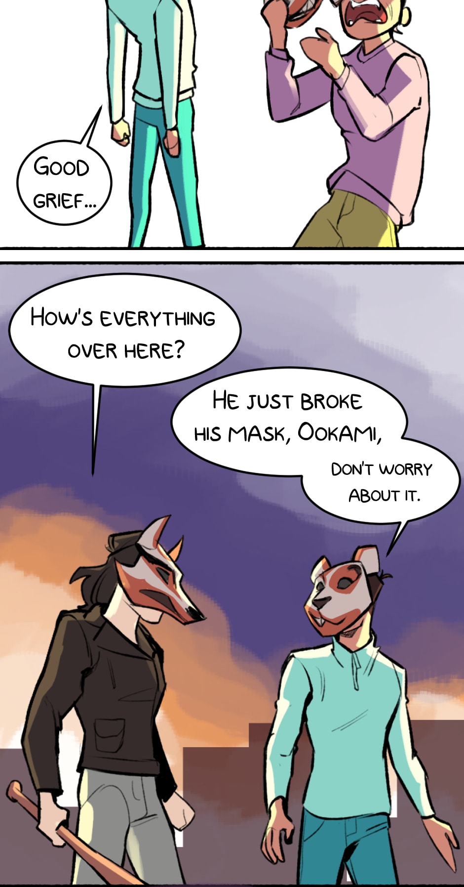 Content warning: Okami Gang is a webcomic intended for mature audiences featuring sensitive topics (transphobia, dysphoria, violence, swearing) reading discretion is advised.