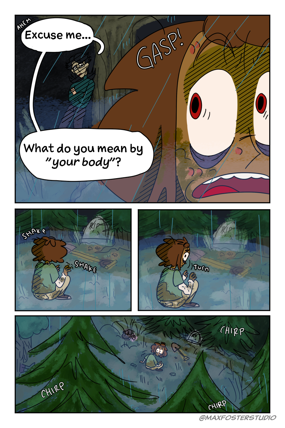Caddy Morgan sets forth into the woods in an attempt to find "their body." After having little to no luck and even digging up the wrong grave, the search seems pointless. On the brink of giving up hope, they meet the astute Oscar. Oscar says he knows where their body is and invites Caddy to follow him into an uncertain venture into the forest.