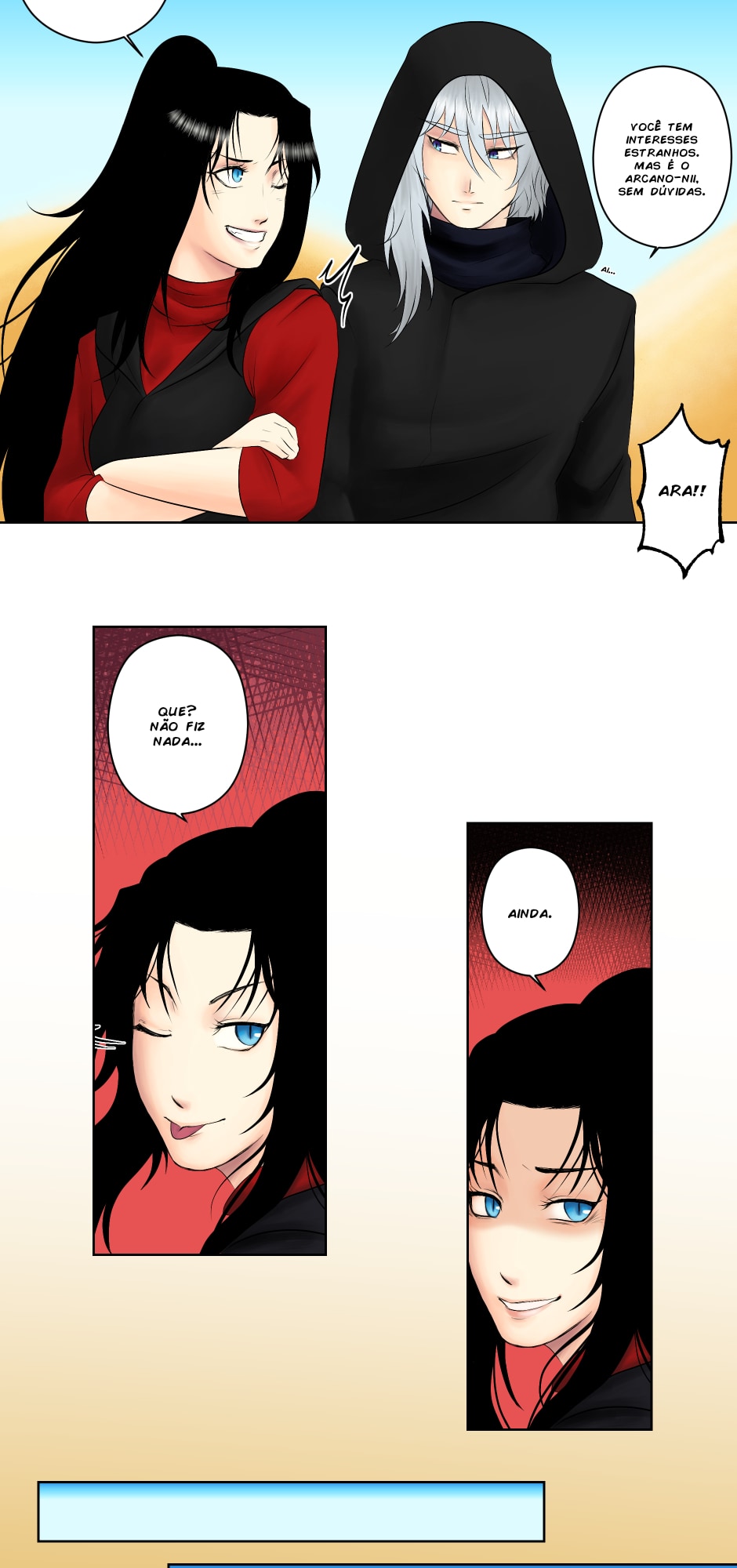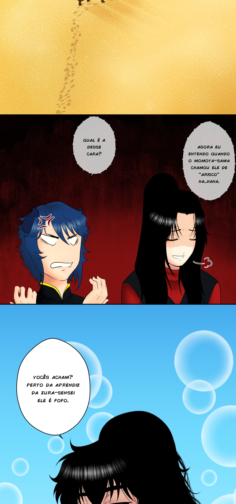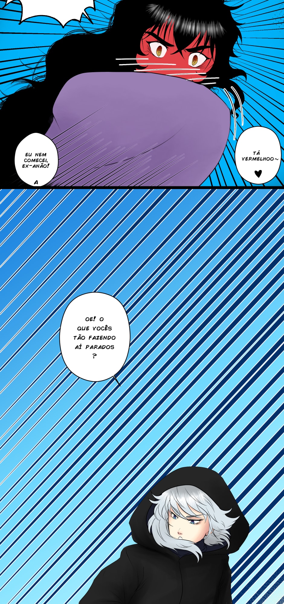 No canto, a cobra, o dragão e os ruivos observam incrédulos.