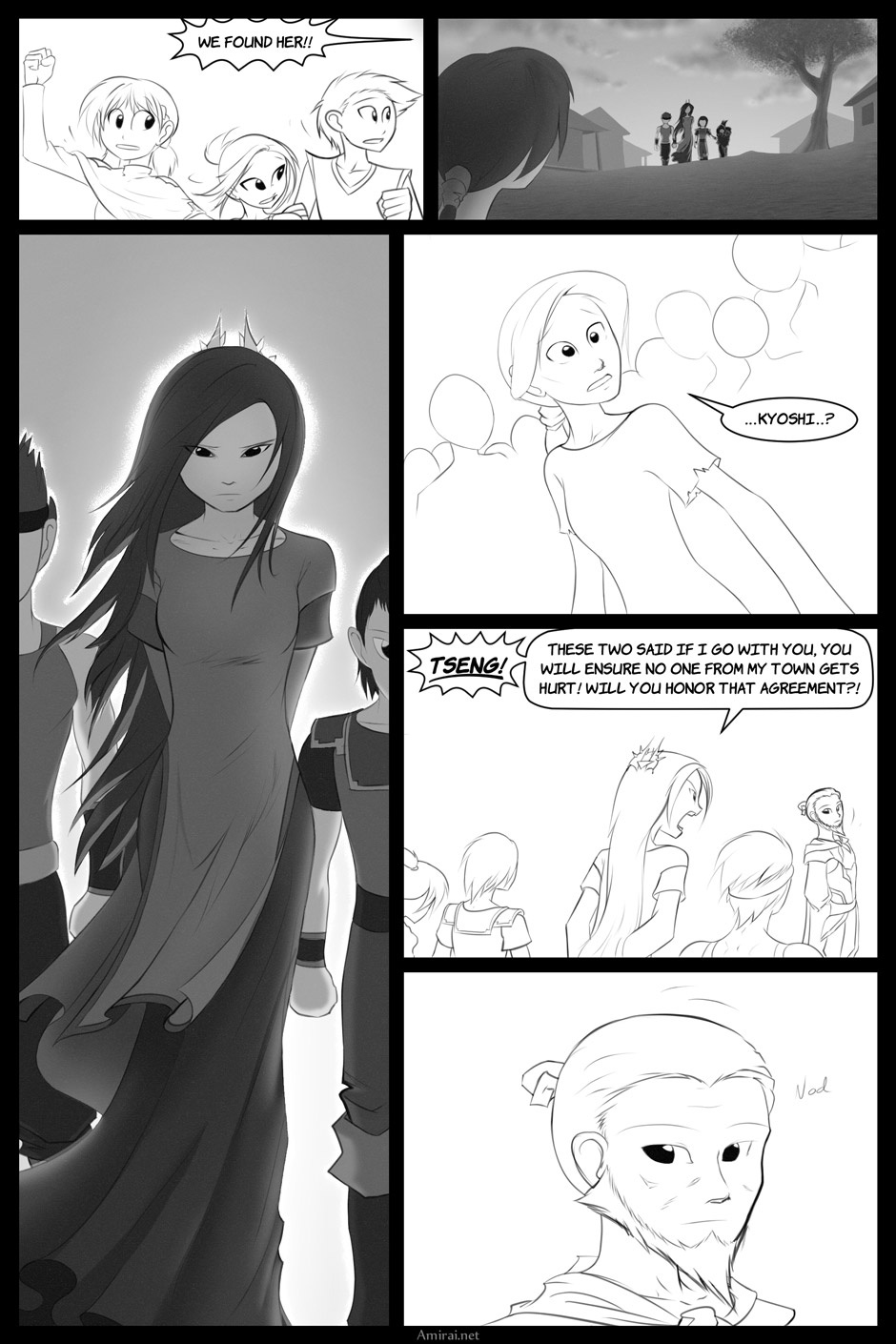 I've been switching the amount of shading on a page by page basis, but I saw in a lot of manga they switch sometimes on a per-panel basis, and thought I'd try it out because of the background in panel two. The downside is the shaded environment didn't match the rest of the art in the panel, so I had to shade the characters too, but then that panel looked odd by itself because it doesn't match the others, which made me feel that I needed to at least shade panel three, which made me want to shade all of them, and at that point it would have taken way longer. Gah. I've got to study more manga to learn how they do it.