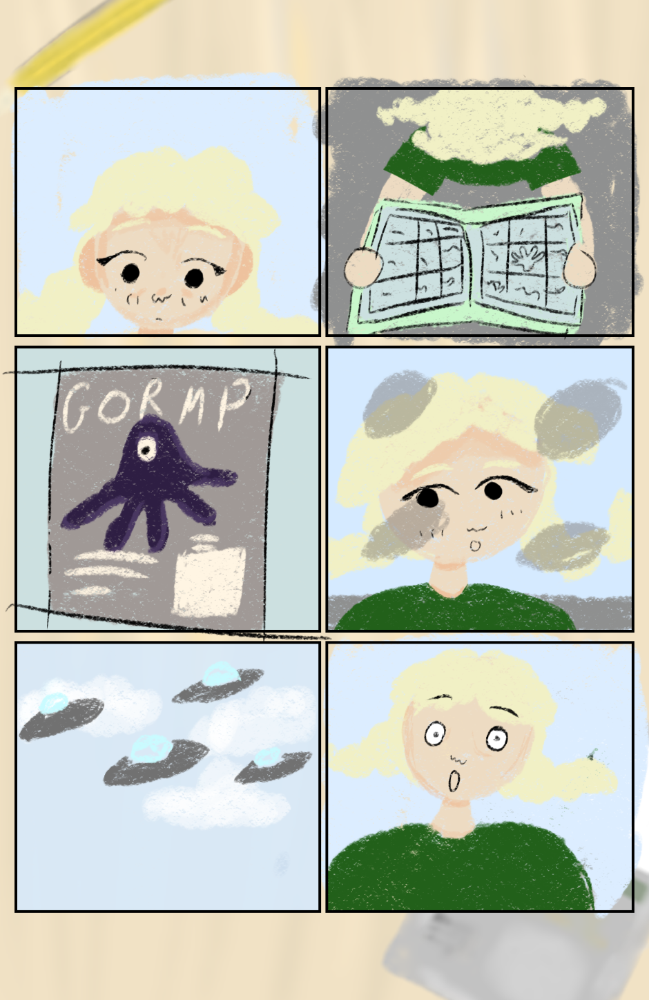 Hoping to find the Grimple, Bryonny sets off on a trip to a local convention, Probécon. On the way, real aliens attack her city and, aided by unexpected new friends, she must embark on a journey to the nearest safe location: the convention centre.