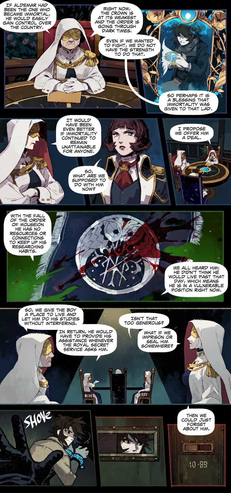 HAYDEN’S NOTES is a magic realism mystery with horror elements, set in the fictional country in the first half of the 20th century. The comic’s told in the non-chronological order revolving around Hayden Carter, immortal (by accident) gray mage, pursuer of knowledge and a witty nuisance for everyone around.