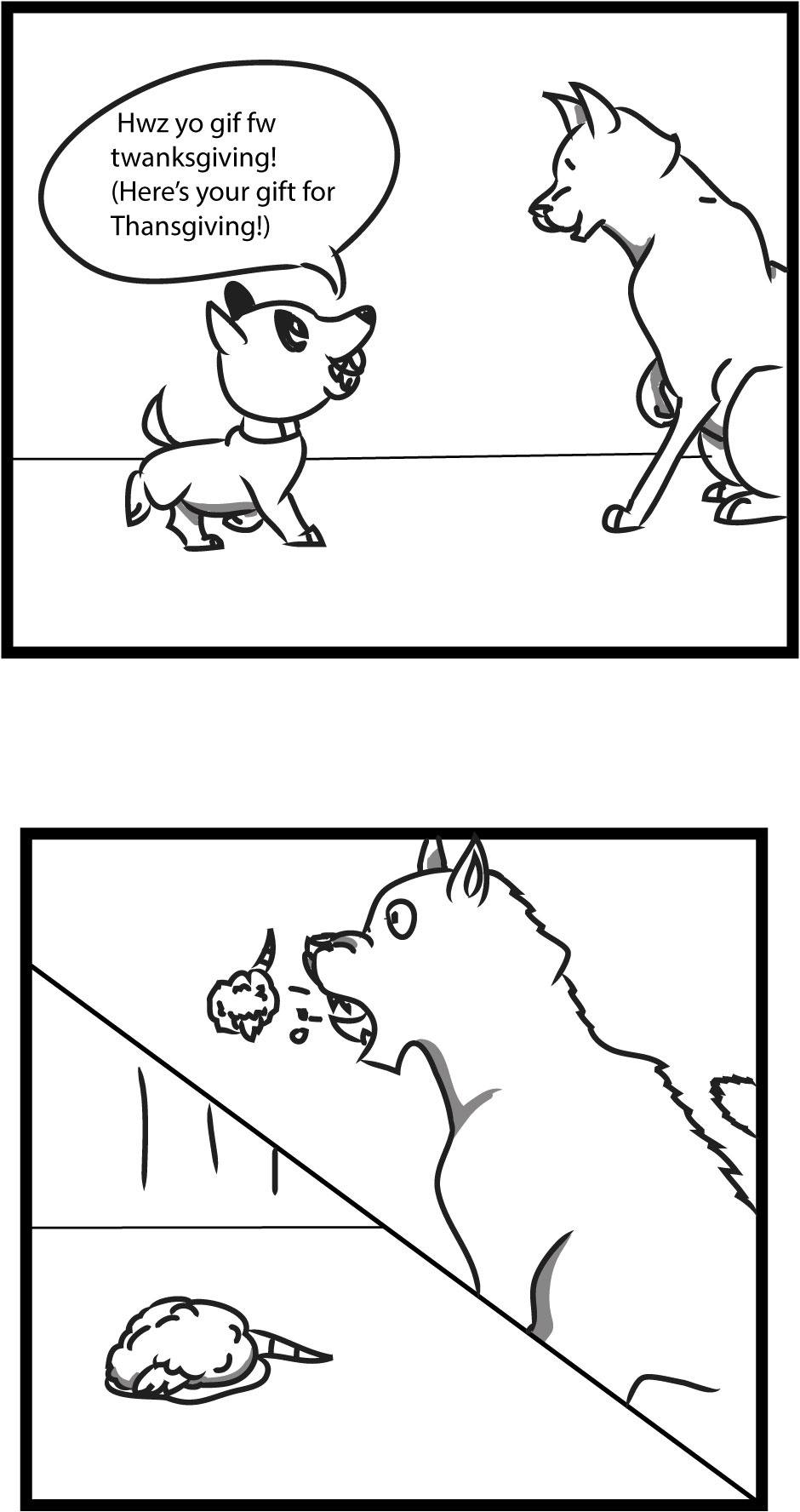 Pan and Cake are enjoying Thanksgiving in their own way! Also I will not be uploading an episode next Wednesday due to Thanksgiving break. Hope you all enjoy yours!