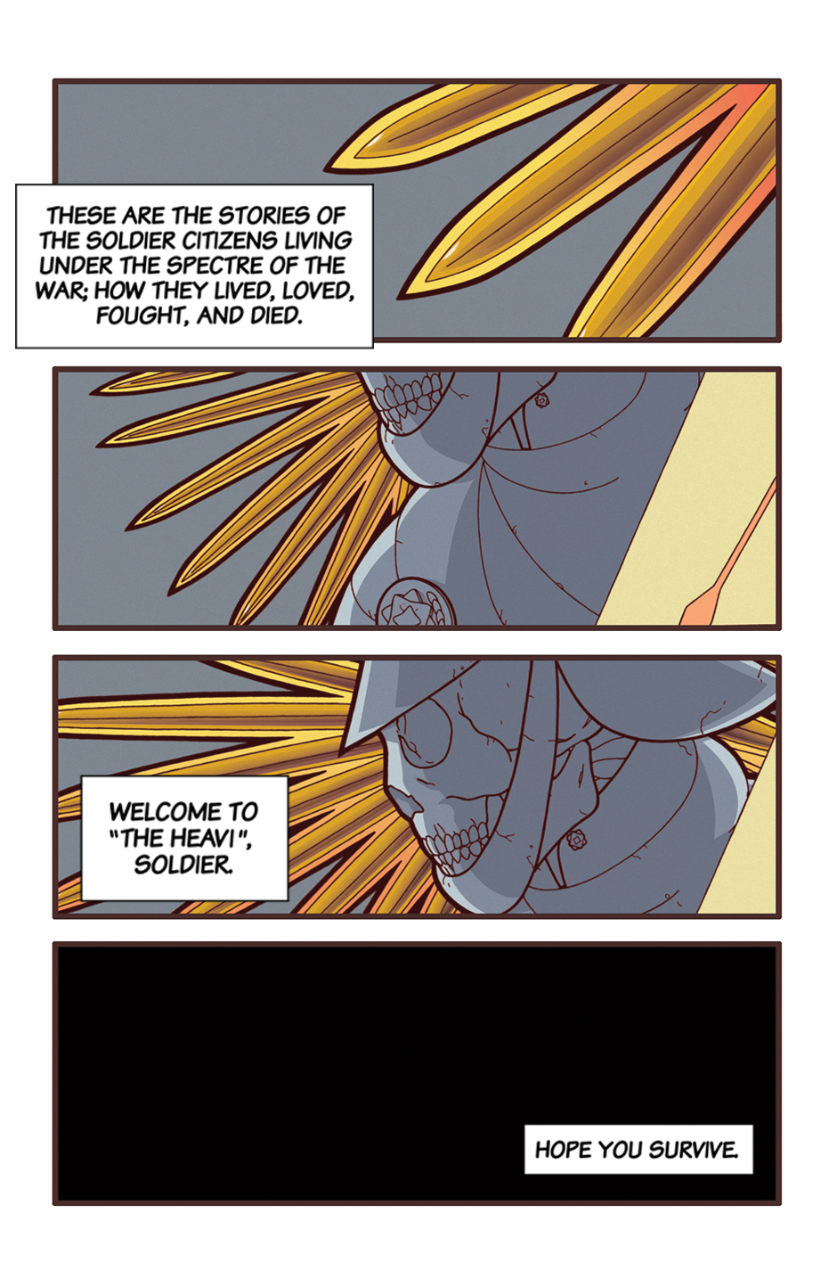 The United Territories are a fascistic, militaristic world power. While engaged in all manner of conflicts around the world; one particular conflict stands apart. Simply called "The War", no one knows who the enemy is, who's winning, or how long The War has lasted. But one thing is known, if you're drafted into The War, you never return.