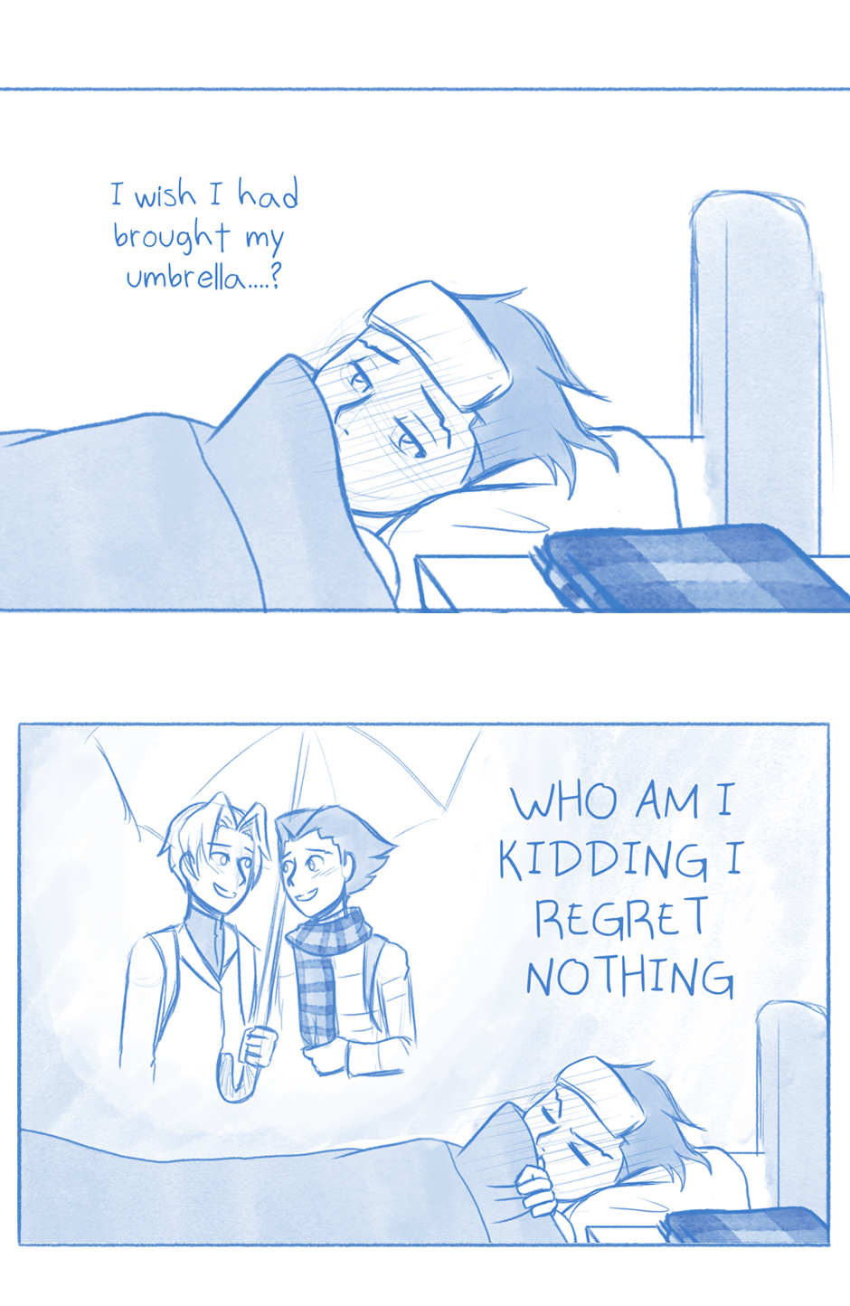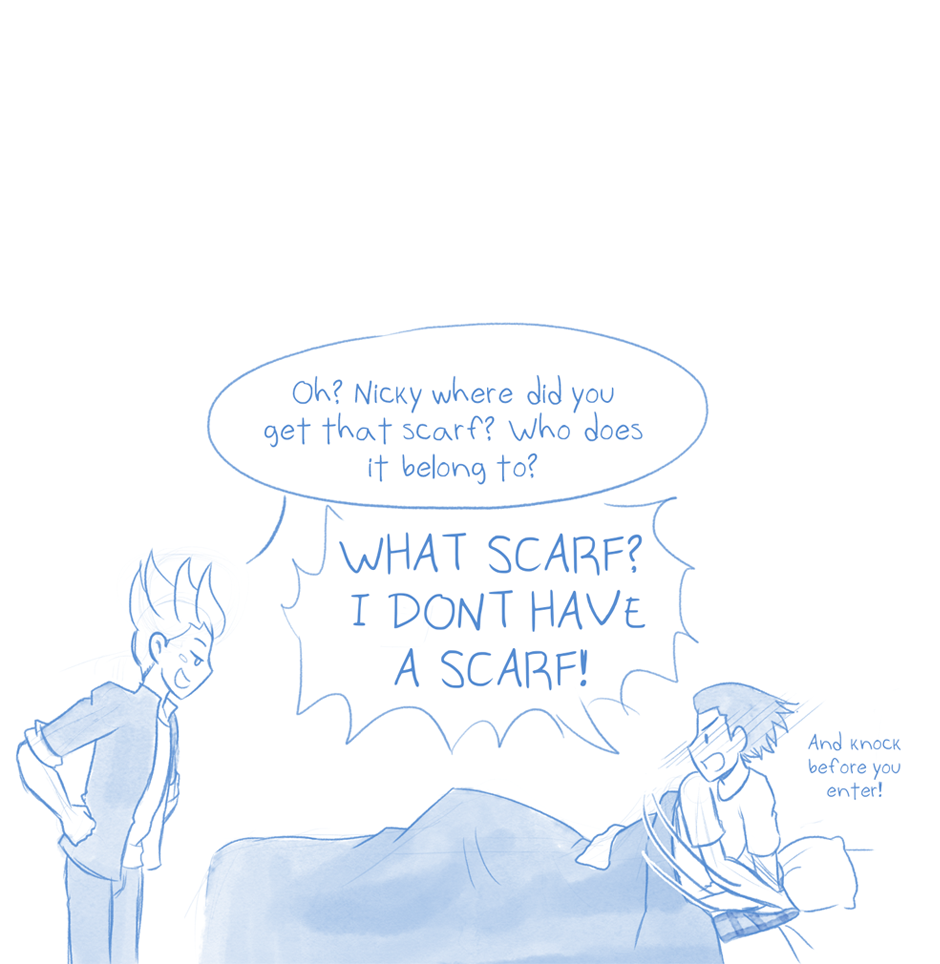 Oh my God xD "What scarf? I don't have a scarf" [obviously shoving scarf under pillow like a fool]