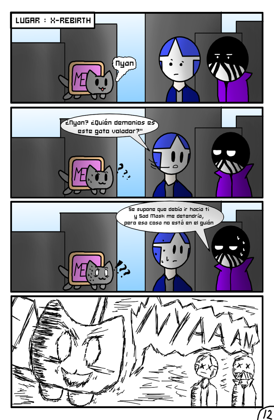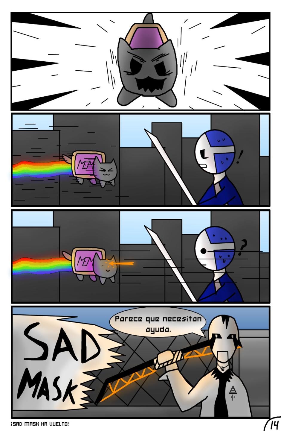 Por otro lado el gato es muy XD pudo derribar a Mask, si lo derrotan despues se lo comen, bueno solo se comeran la parte de la galleta... verdad?
