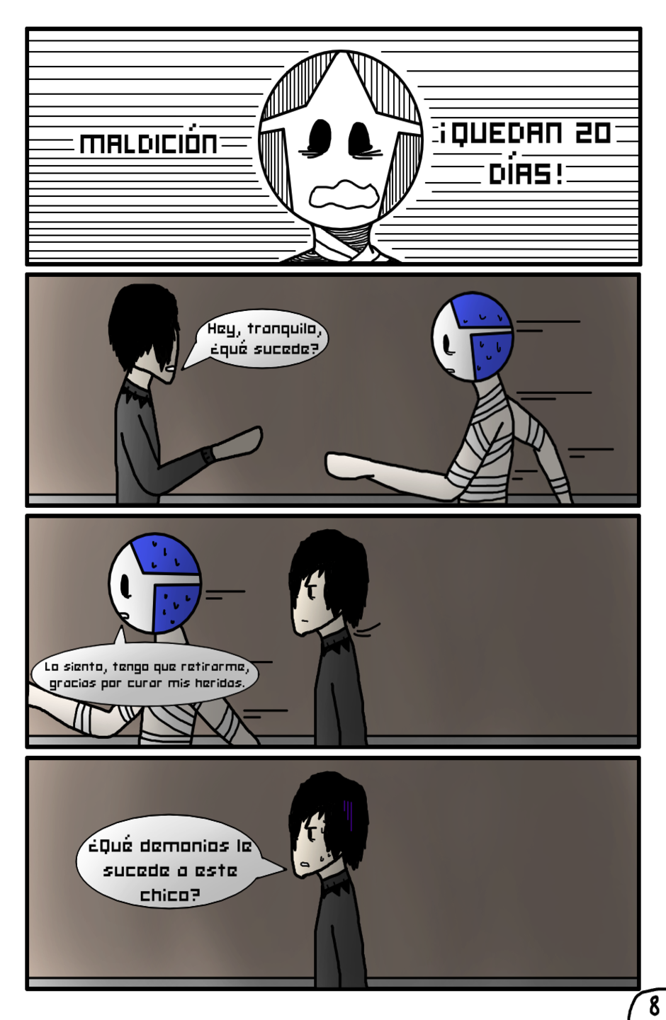 Mientras tanto Xxitra esta vendado, pues claro tenia heridas por la pelea que tuvo con Atlas. Y vaya vaya vaya, el visitante parece serio se ve que no quiere revelar informacion a nadie. 4 dias en coma por asi decirlo, 20 dias, el tiempo vuela y te sentiras desesperado si tienes algo que hacer, y tambien si llegan 2 personas random de Loxis que no conoces.